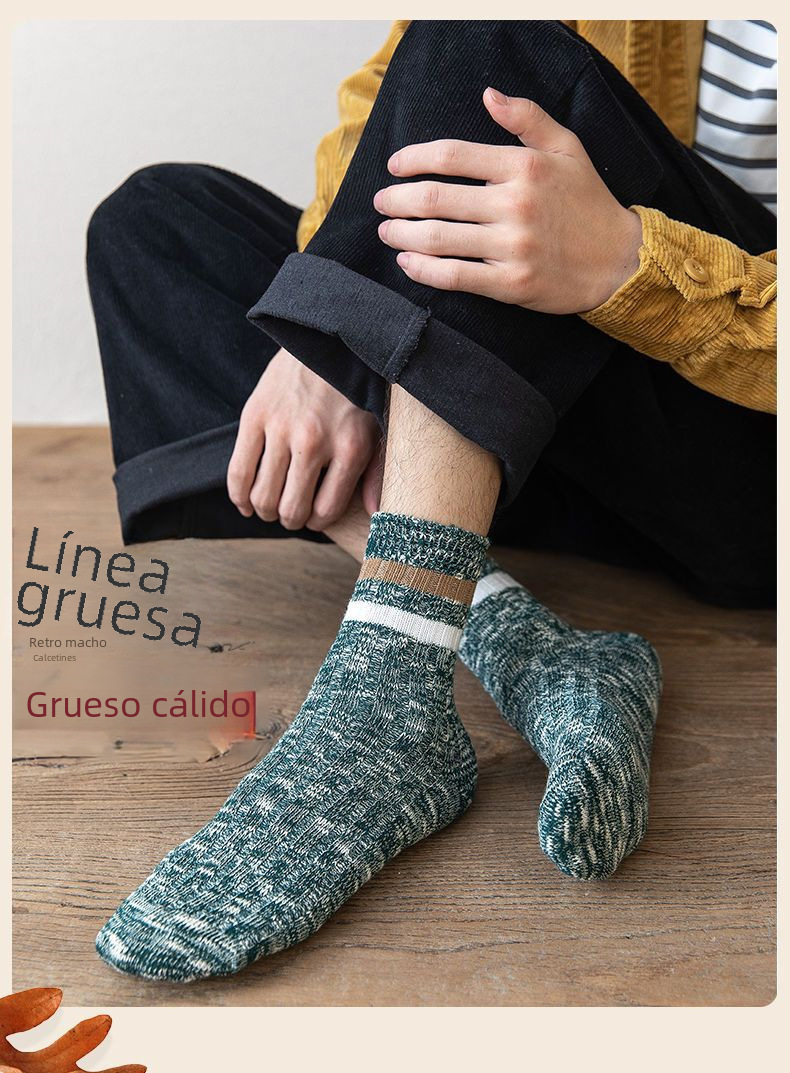 Estilo étnico retro mitad de la pantorrilla cálido casual engrosado Zhuji aguja doble hilo grueso calcetines de hombre Otoño e Invierno Nueva entrega de una sola pieza