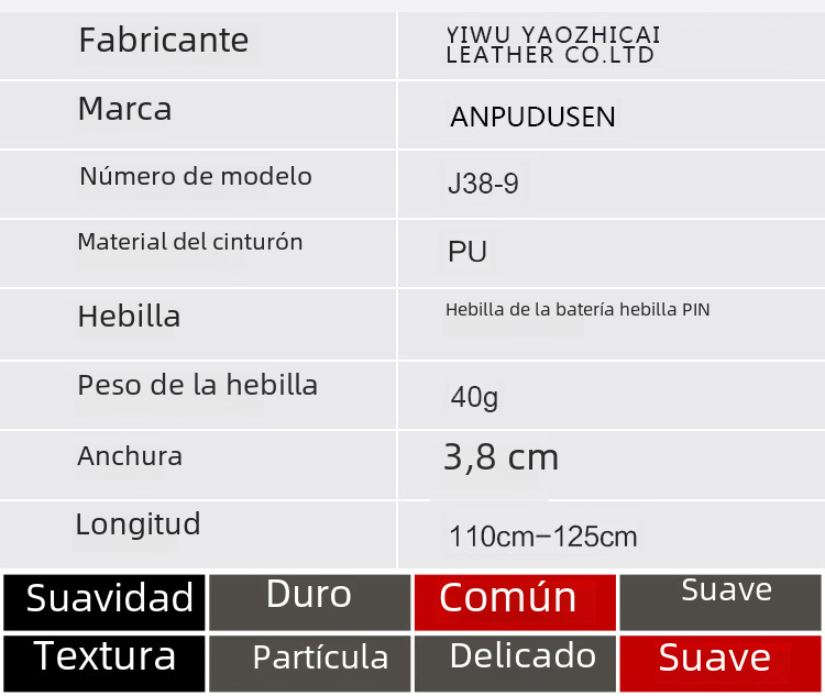 | Material de la hebilla del cinturón | Aleación |