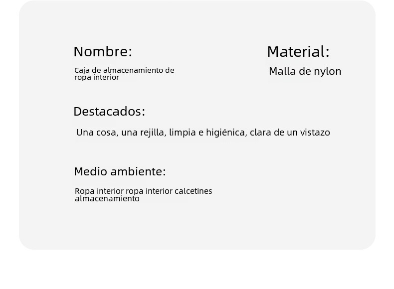 | Categoría de producto | Caja de almacenamiento de ropa interior |