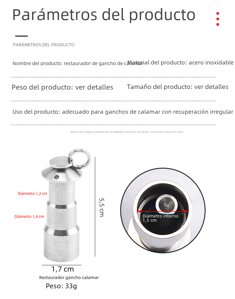 | Colores | Varilla de empuje de corrector de anzuelo de calamar |