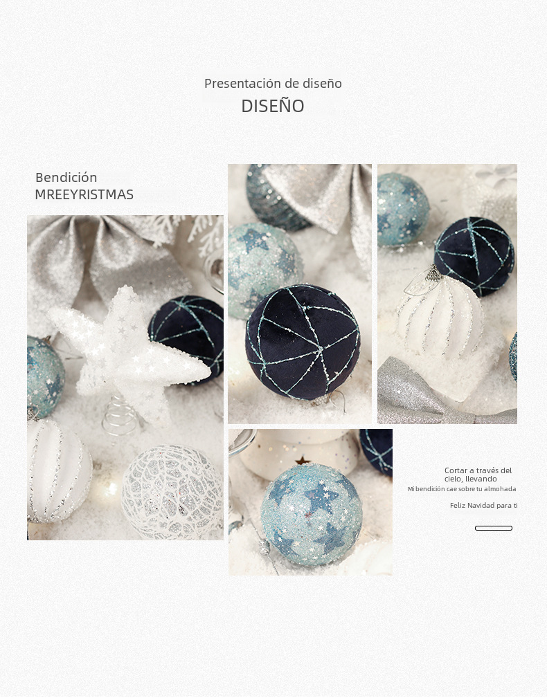 Diseño elegante y moderno:Con su diseño elegante y moderno, estos adornos de Navidad son perfectos para cualquier tipo de decoración de hogar. Ellos añaden un toque de sofisticación a cualquier ambiente.