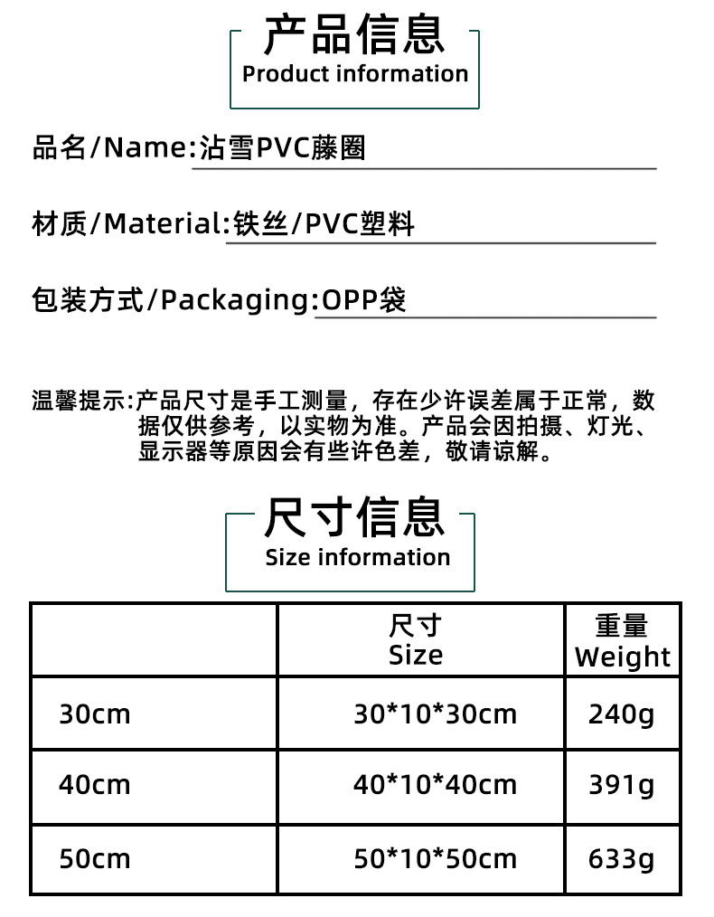 | Artículo No. | Anillo de ratán PVC manchado de nieve |
