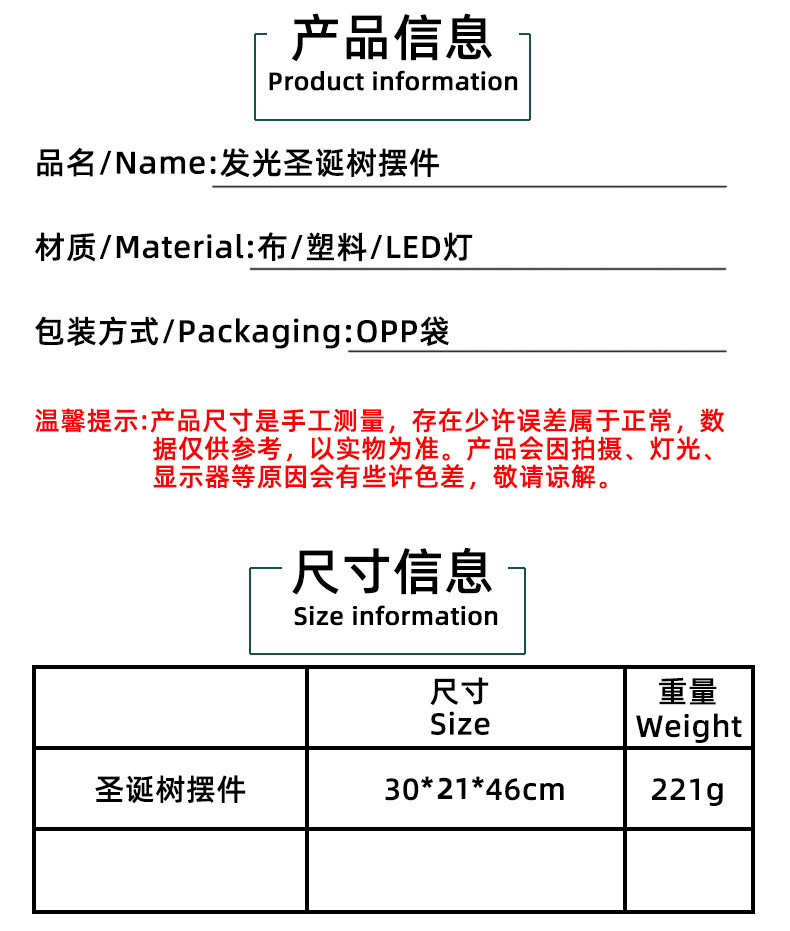 | Color | H3-22 adornos luminosos del árbol de Navidad |