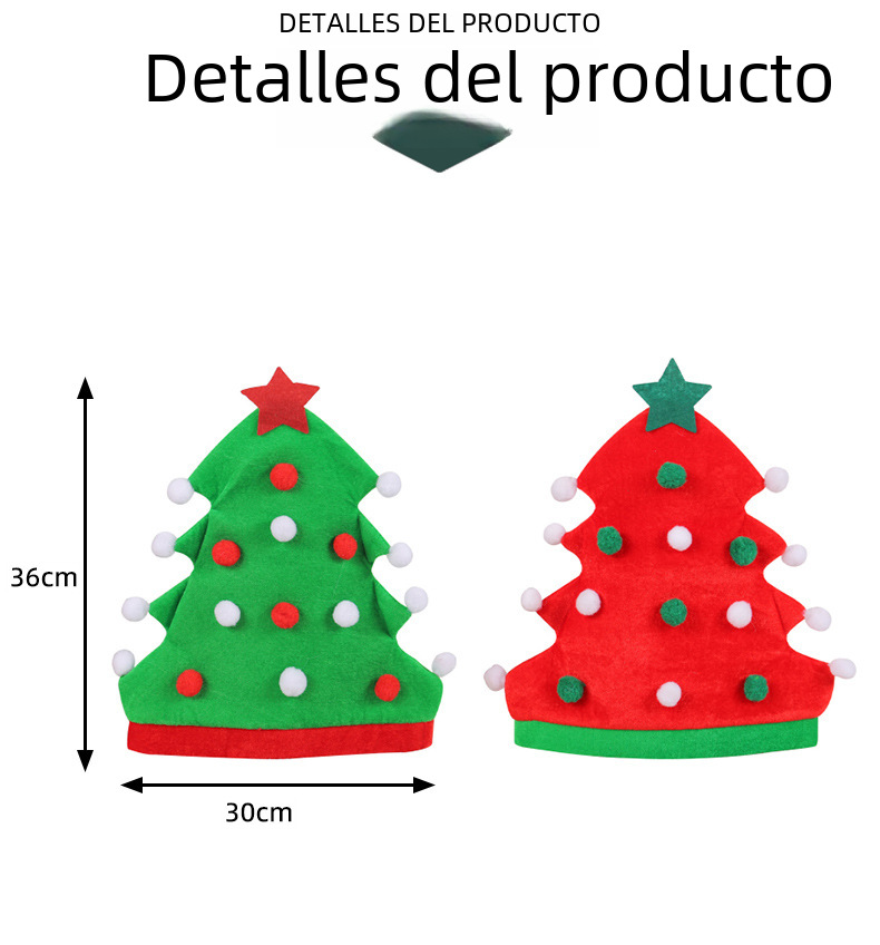 Material de alta calidad:Hecho con materiales de alta calidad, este sombrero de árbol de Navidad es duradero y seguro para usar, asegurando que disfrute de su sombrero durante mucho tiempo.