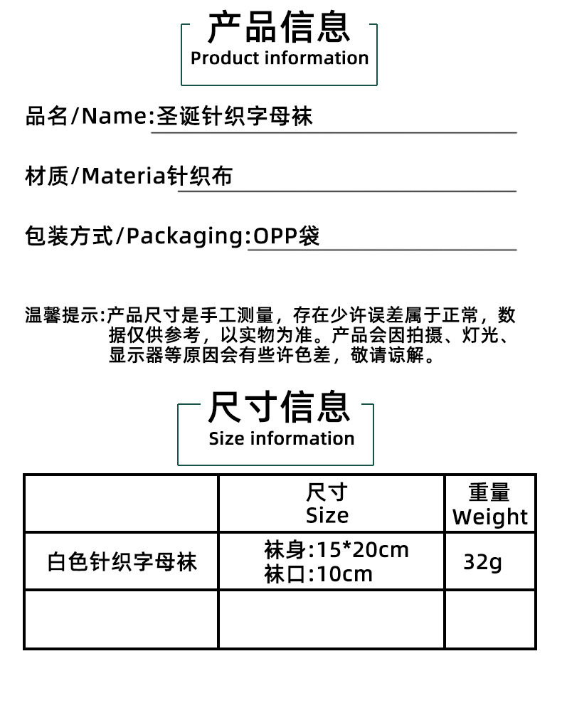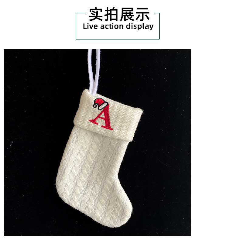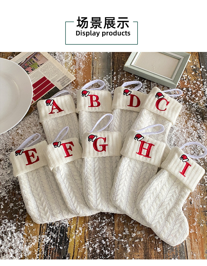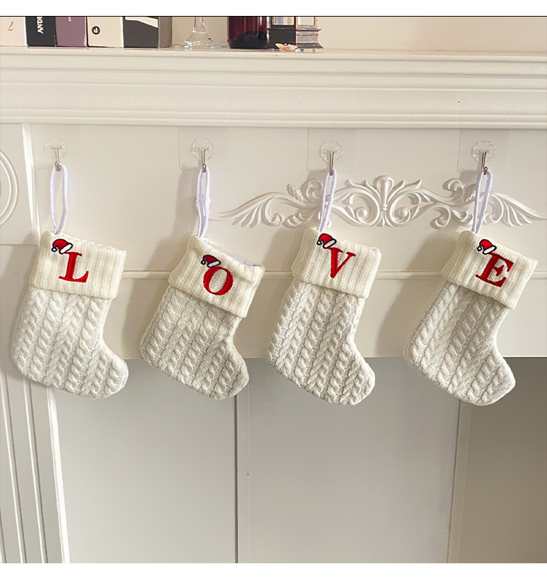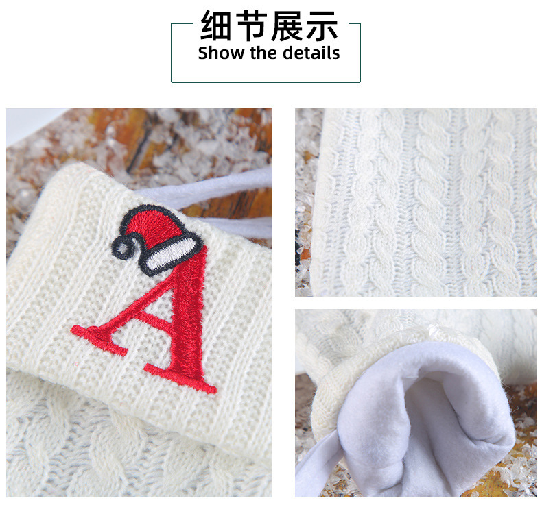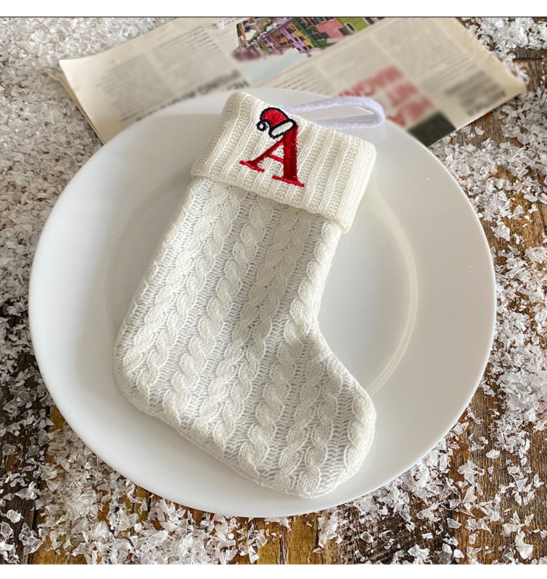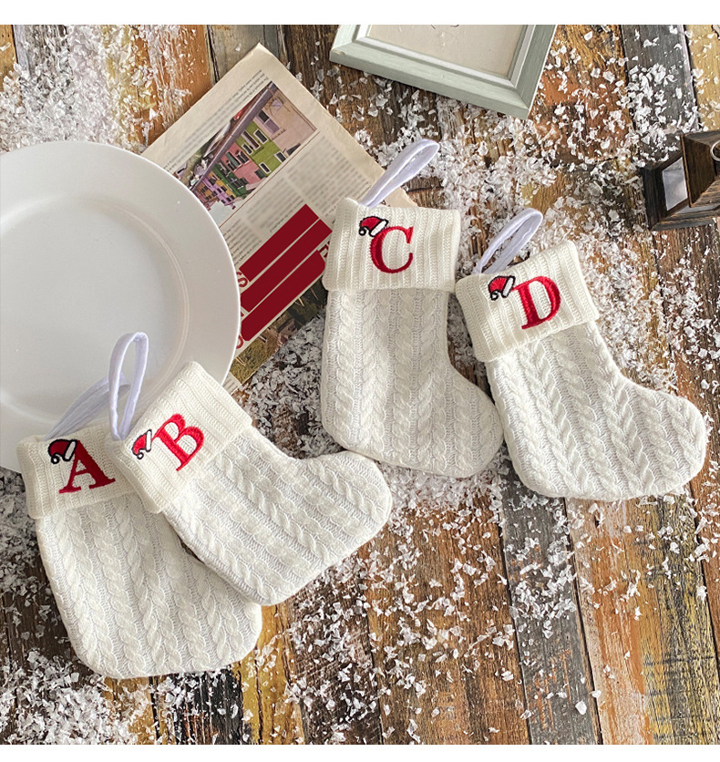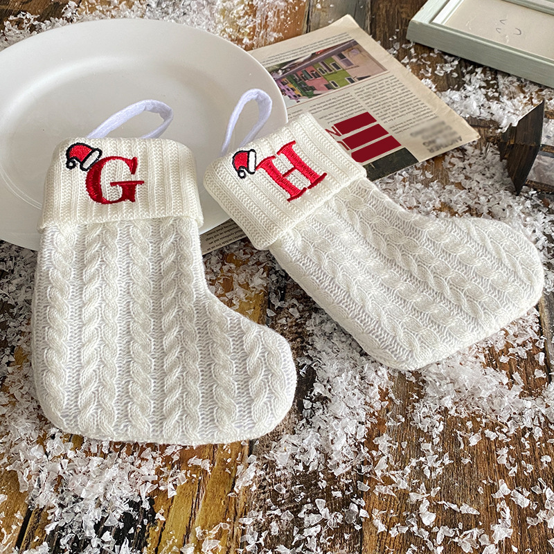 Decoraciones transfronterizas calcetines de punto calcetines de lana letras bordadas bolsa de regalo de dulces PARA NIÑOS Calcetines de Navidad blancos bolsa de regalo