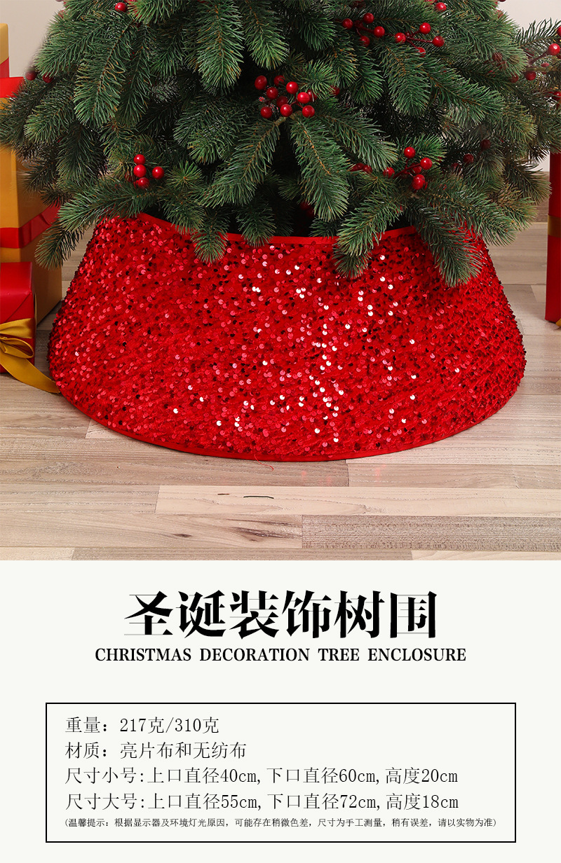 Falda de árbol redonda roja con lentejuelas,Falda redonda de lentejuelas doradas,Falda de árbol redonda blanca con lentejuelas