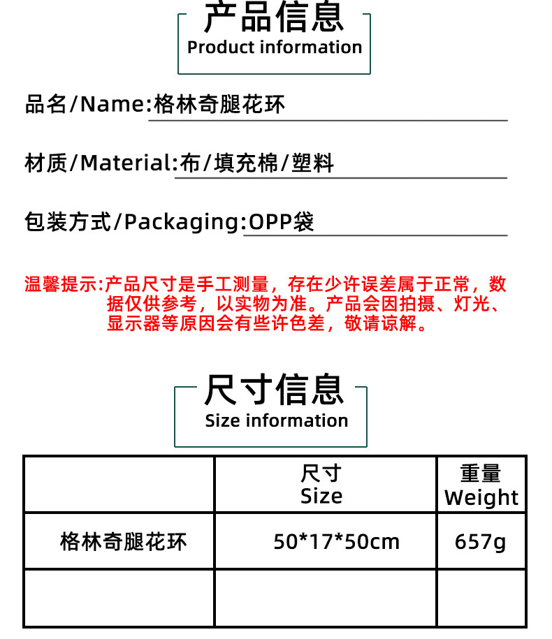 | Color | F1-33 de lujo Grinch pierna Garland |