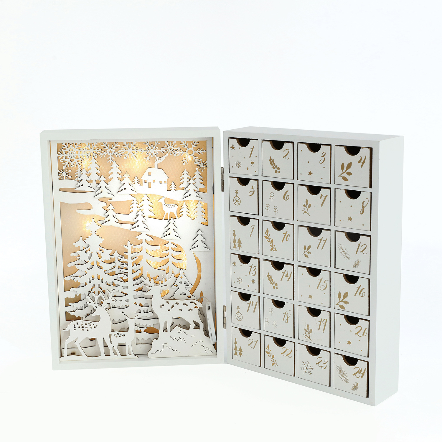 Navidad madera LED CALENDARIO DE Adviento 24 días cuenta regresiva ciervos voladores decoración del hogar regalo