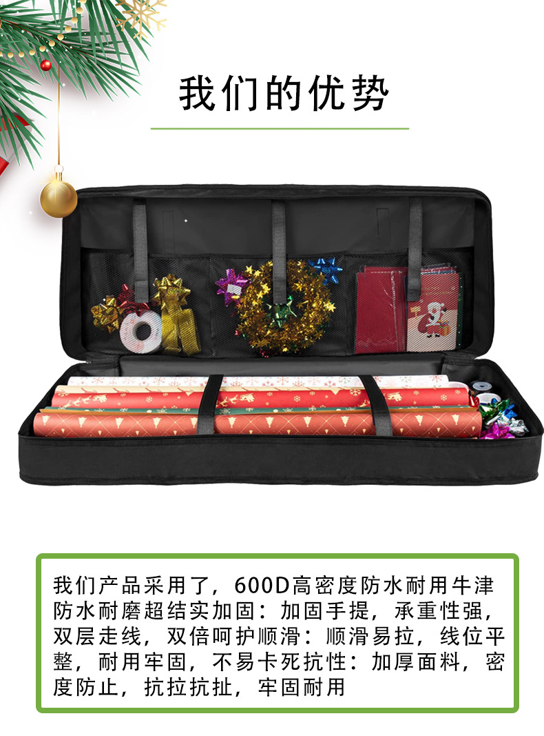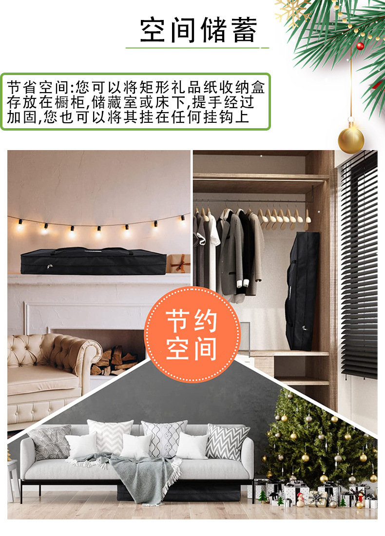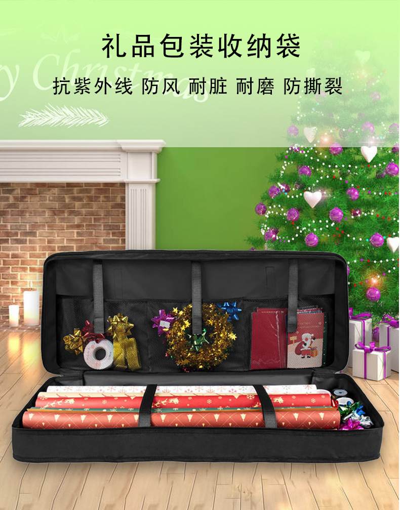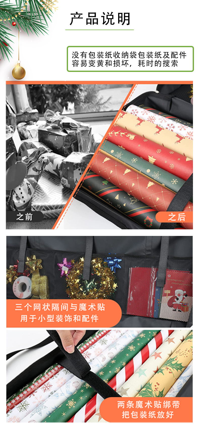 Caja de almacenamiento resistente al desgarro de almacenamiento de papel de regalo de Venta caliente transfronteriza con bolsa de almacenamiento de regalo de Navidad de velcro ajustable