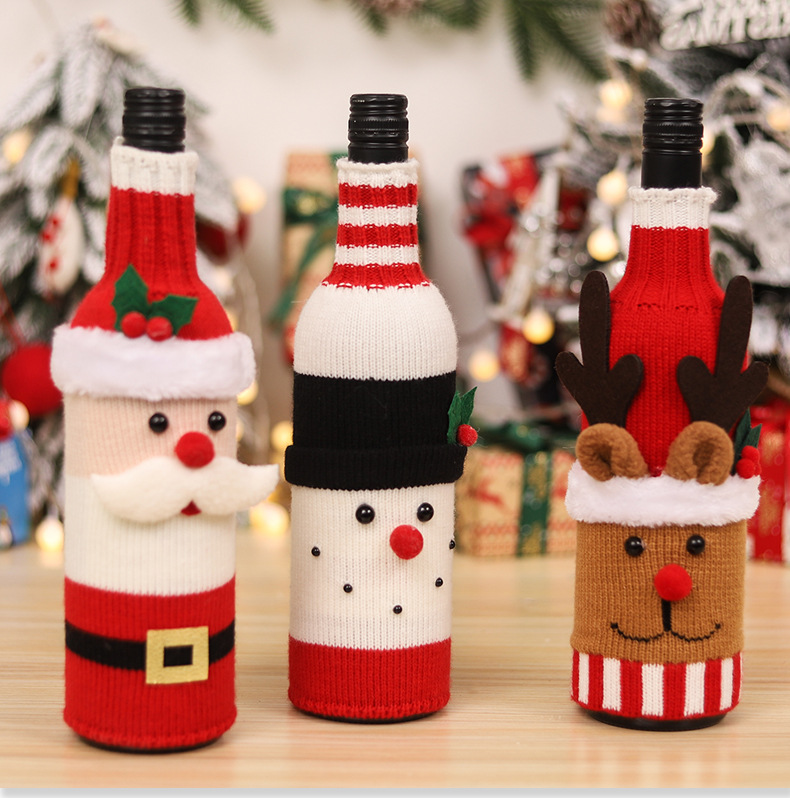Mingguan nueva Navidad decoraciones de punto cinturón lana vieja botella vino cubierta mesa comedor vestir decoración la cocina