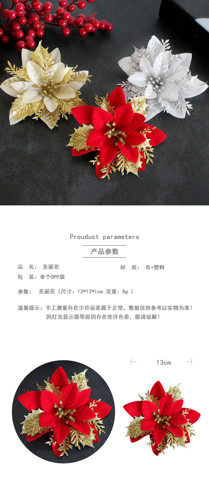 Amazon tres capas oro rosa Navidad flor 2023 Nueva simulación árbol de Navidad flor decorativa vacaciones Decoración Accesorios al por mayor