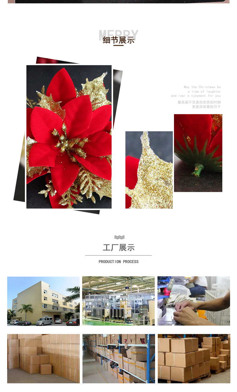 Decoraciones navideñas 2023 Flor de Navidad Hong Kong amor oro y plata rojo flor artificial de tres capas adornos para árboles de Navidad tiro Road