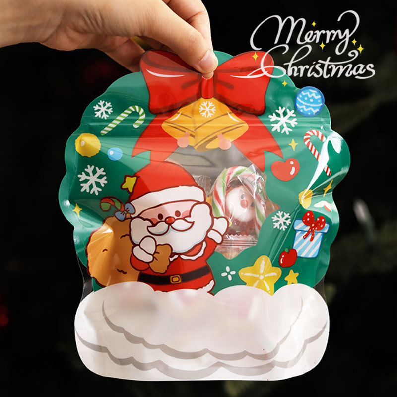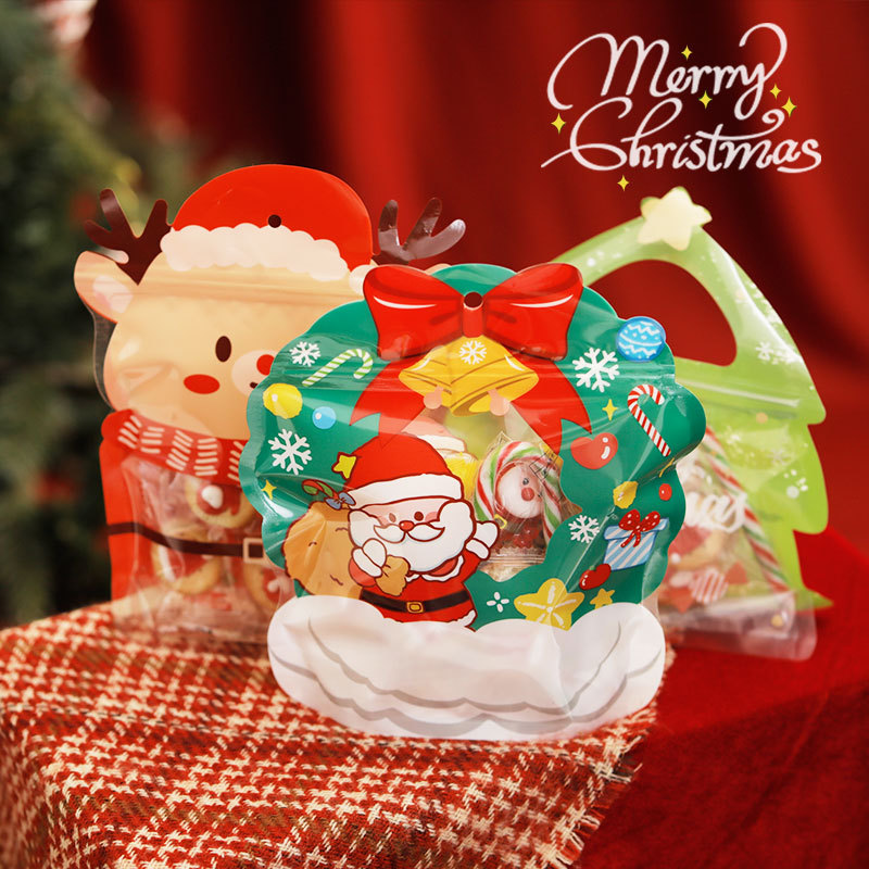 Bolsa sellada de bocadillos de galletas de dulces de Navidad Árbol de Navidad bolsa de embalaje de regalo de forma creativa Bolsa de regalo de Nochebuena