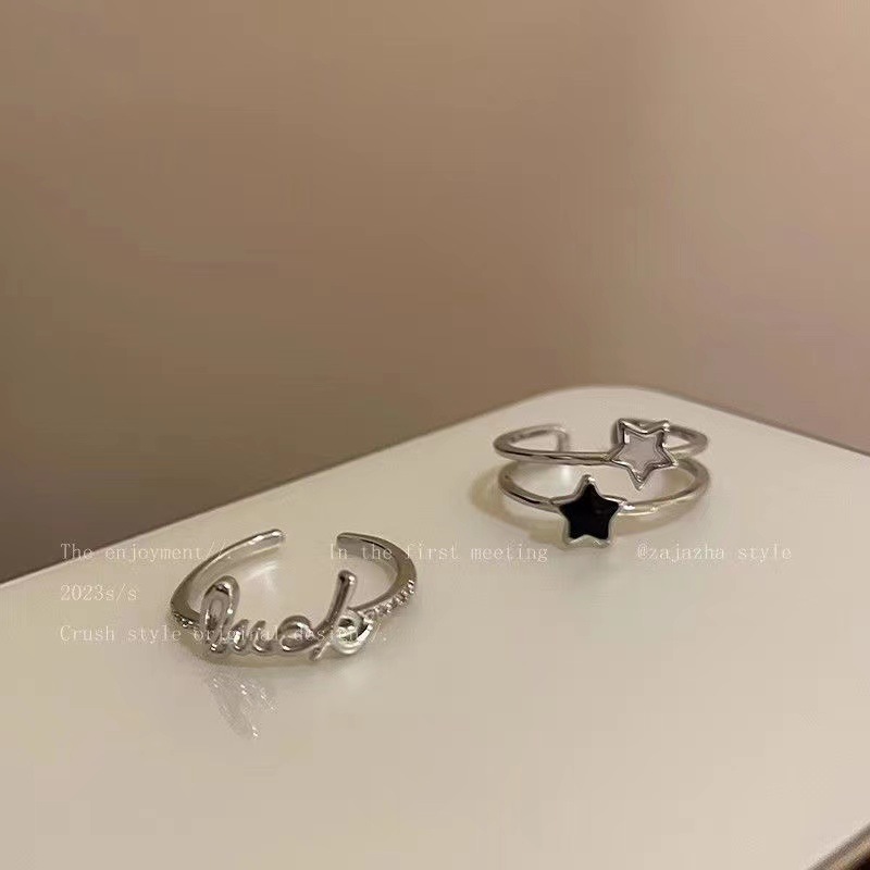 ¡Lucky! Carta estrella anillo de circón mujer verano ins simple estilo frío anillo moda personalizada anillo de dedo índice