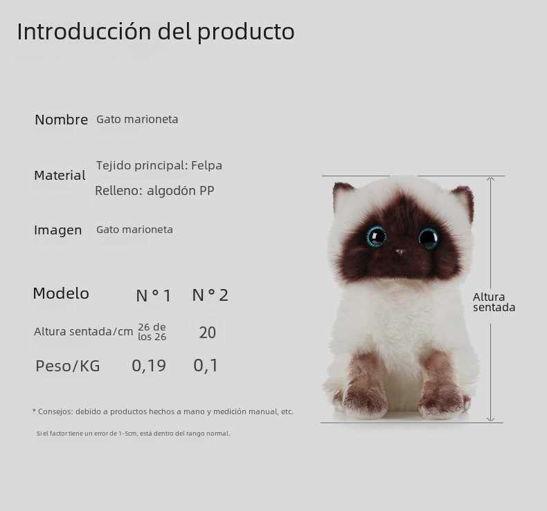 | Número de artículo | Gato siamés gato títere (bebé de abrazo genuino) |