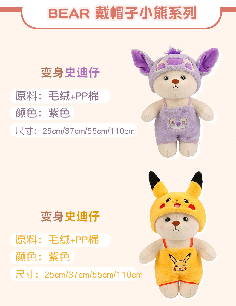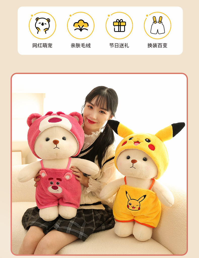 | Color | Oso puntada de travestido,Oso de fresa Crossdressing oso,Oso gato KT travestido,Traje de oso Pikachu |