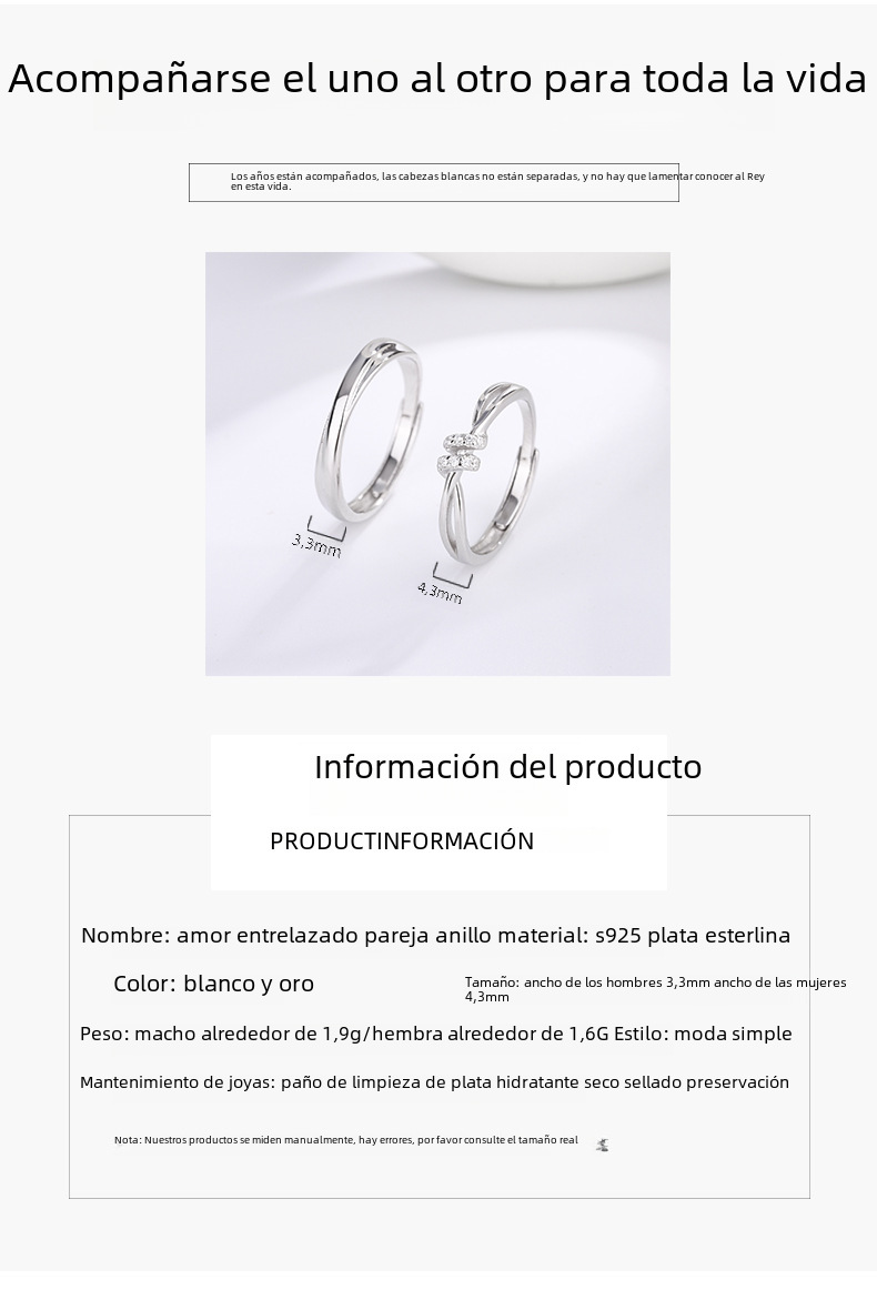 | Pureza del material | 925 Plata |