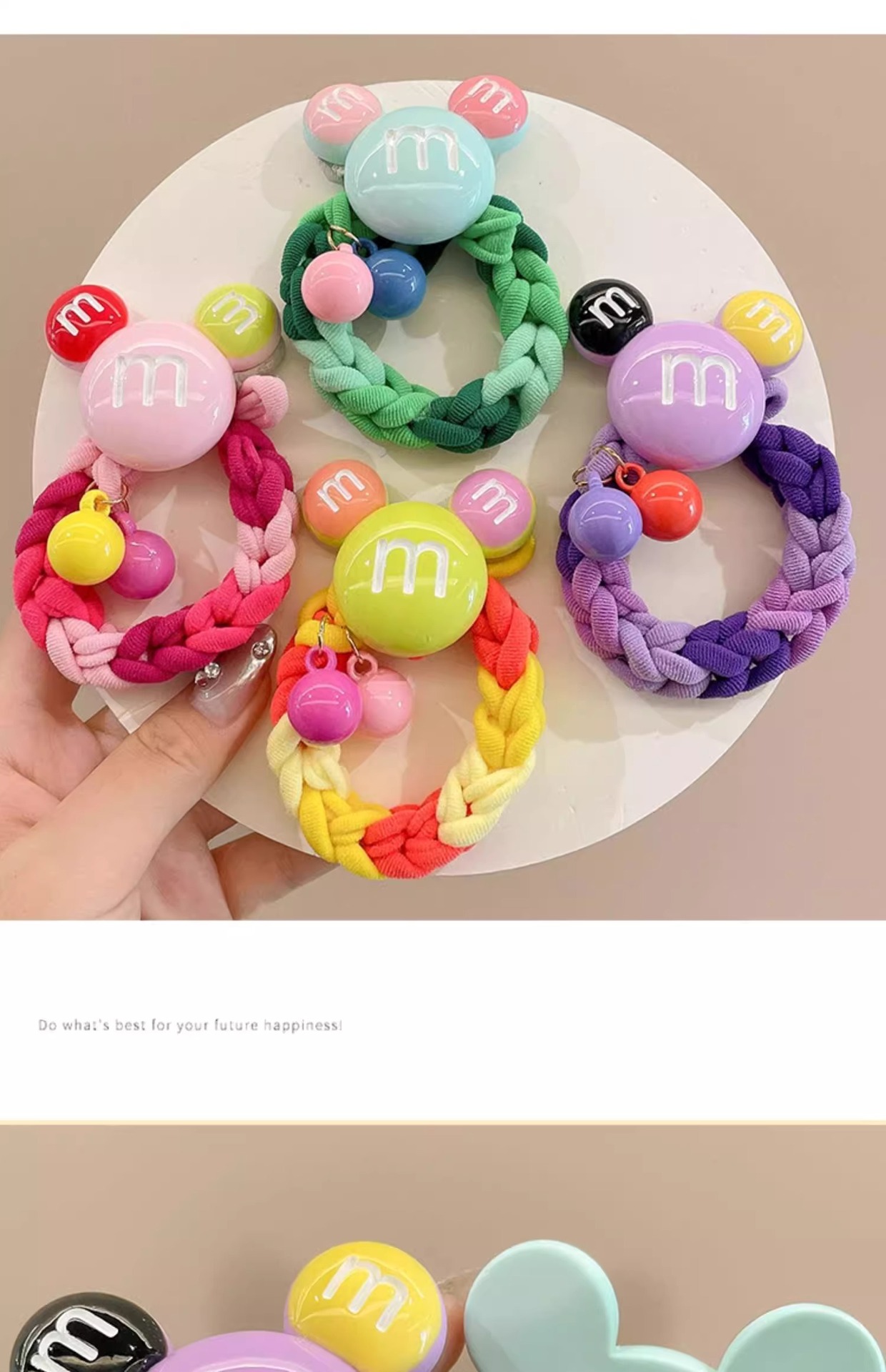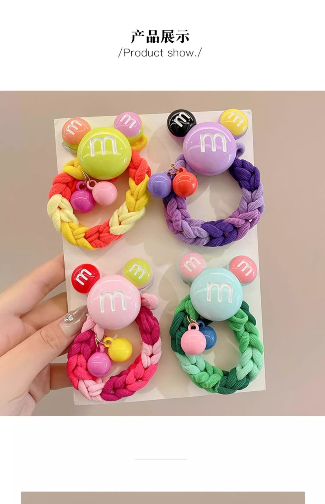 | Color | 1 # anillo de pelo Mickey amarillo,2 # Anillo de pelo Mickey verde,3 # anillo de pelo Mickey rosa,4 # anillo púrpura del pelo de Mickey |