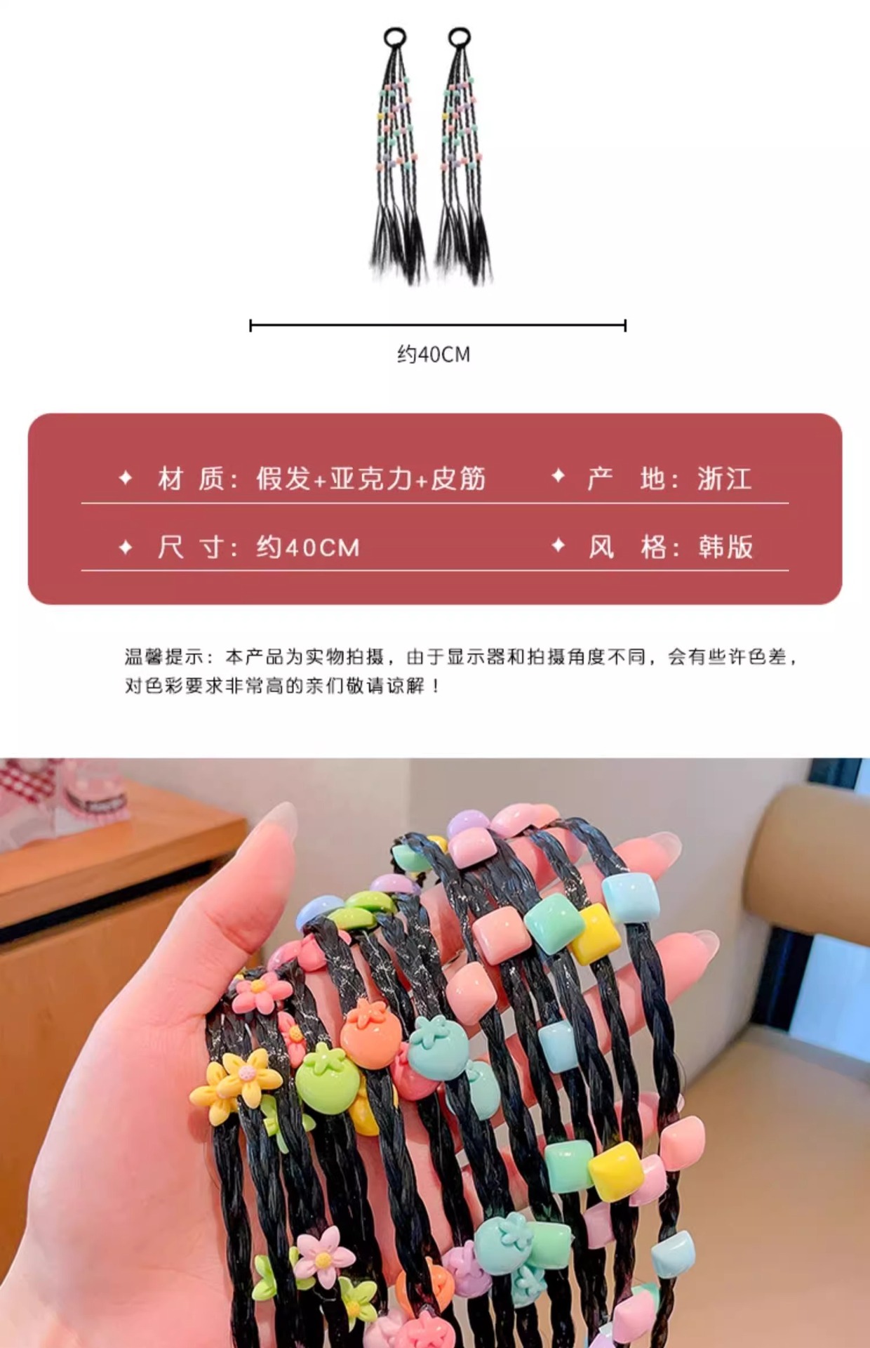 | Color | 1 # colorido amor peluca,2 # colorido fresa peluca,3 # pequeña flor colorida peluca,4 # Color peluca cuadrada,5 # rojo fresa peluca,6 # zanahoria peluca,7 # colorido estrella de cinco puntas peluca |