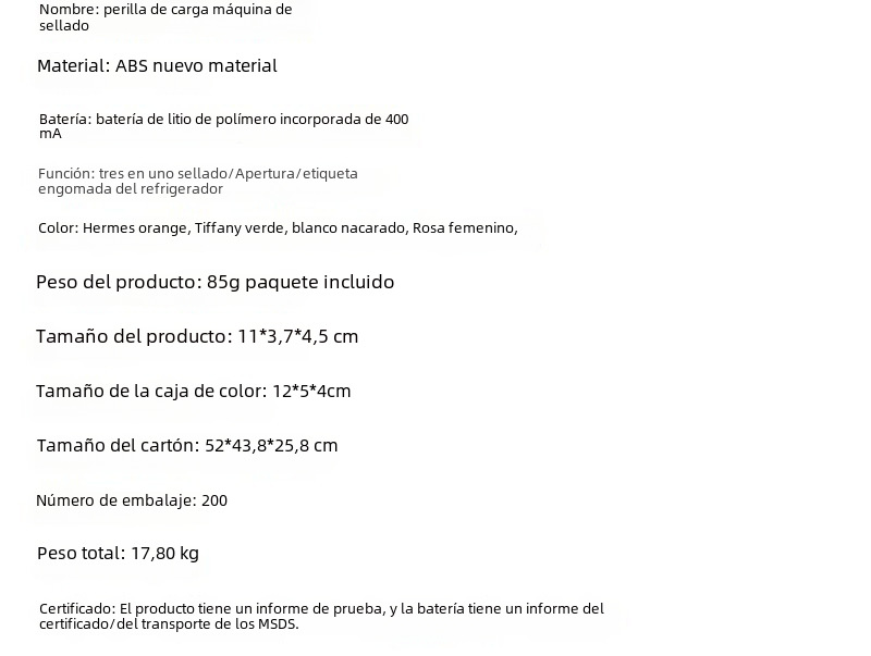 | Color | Hermes naranja,Tiffany Verde,Chica Rosa,Blanco nacarado,Piedra Negro |