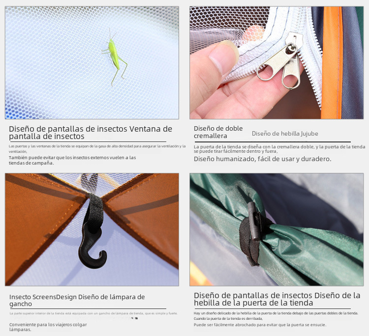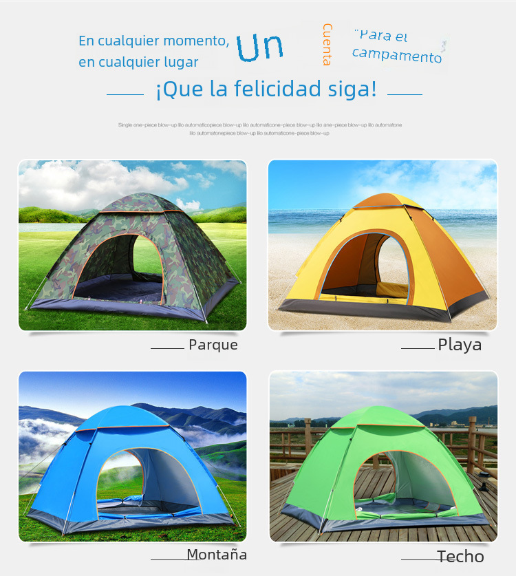| Color | Azul,Camuflaje,Verde,Verde Naranja,Verde Naranja,Verde oscuro solo,Cielo azul solo,Verde Oscuro dos puertas y dos ventanas,Cielo azul dos puertas y dos ventanas,Verde negruzco 3-4 personas |