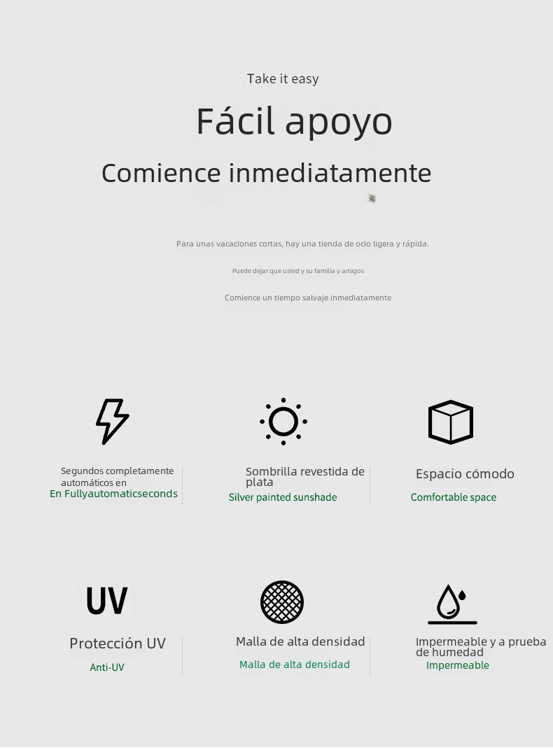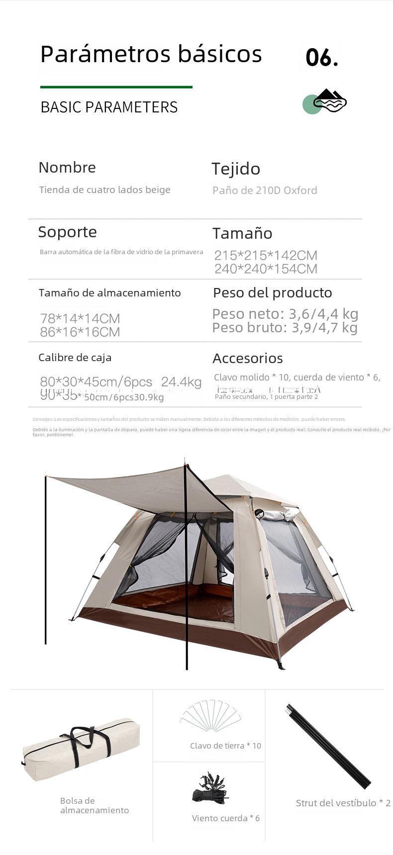 | Tamaño de la expansión de la tienda | 240*240*154cm |