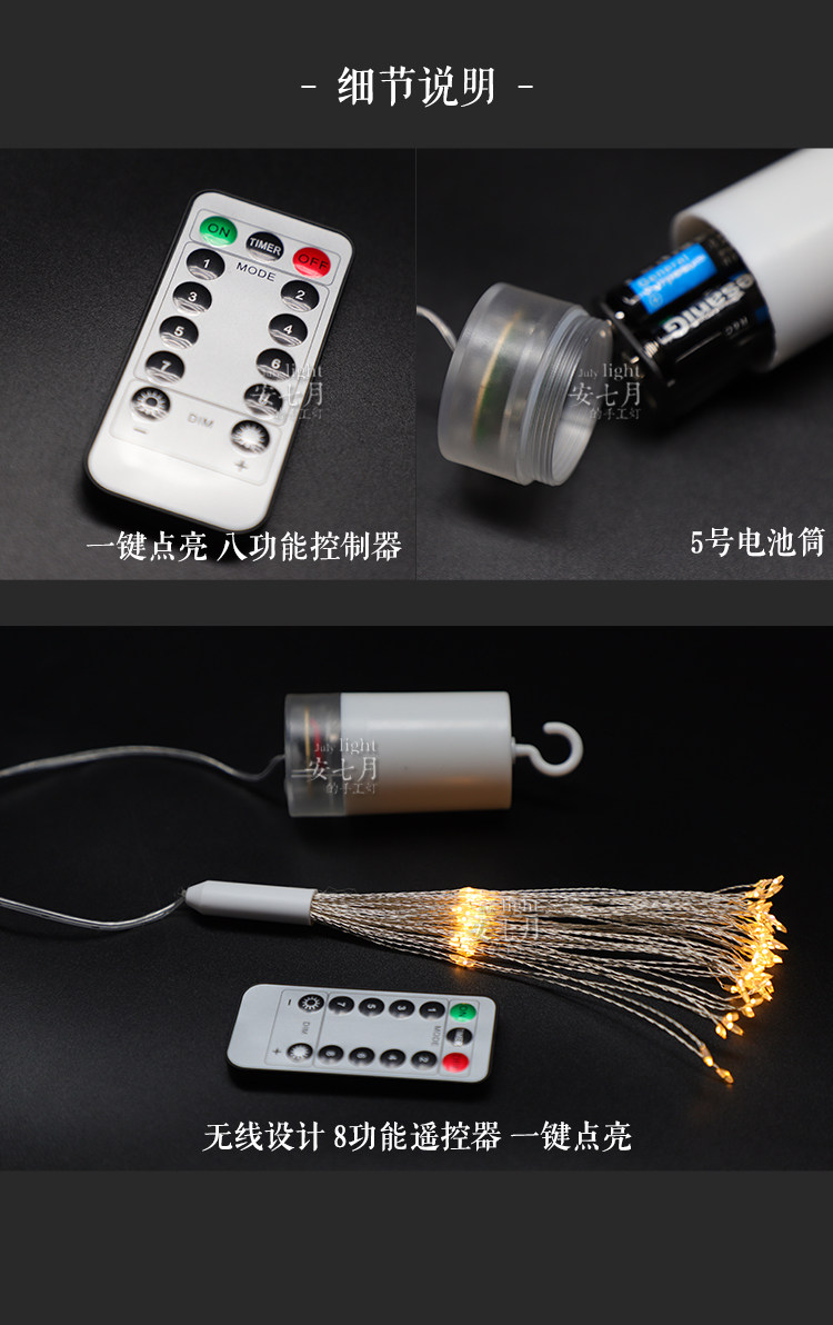| Poder | (Caja de batería cilíndrico para control remoto)-90 luces 30,(Caja de batería cilíndrico para control remoto)-120 luces 40,(Caja de batería cilíndrico para control remoto)-150 luces 50,(Caja de batería cilíndrico para control remoto)-180 luces 60,(Caja de batería cilíndrico para control remoto)-200 luces 40,30 90 lámparas solares 8 funciones,40 120 luces solares 8 funciones,50 150 lámparas solares 8 funciones,60 180 luces solares 8 funciones,50 200 luces solares 8 funciones,Control remoto USB ocho funciones-90 luces 30,Control remoto USB ocho funciones-120 luces 40,Control remoto USB ocho funciones-150 luces 50,Control remoto USB ocho funciones-180 luces 60,Control remoto USB ocho funciones-200 luces 40,31v enchufable 8 funciones uno a cinco 120 luces x5,31v enchufable 8 funciones uno para diez 120 luces x10,Control remoto solar 8 funciones un arrastre cinco 120 luces x5,Control remoto solar 8 funciones uno a diez 120 luces x 10,Control remoto de placa solar grande, un soporte, cuatro luces 360 [90x4],Control remoto de placa solar grande uno soporte cinco 450 luces [90x5],Control remoto de placa solar grande, un remolque, 4 luces colgantes, 480 [120x4],Control remoto de placa solar grande 1 arrastre 5 luces colgantes 600 [120x5] |
