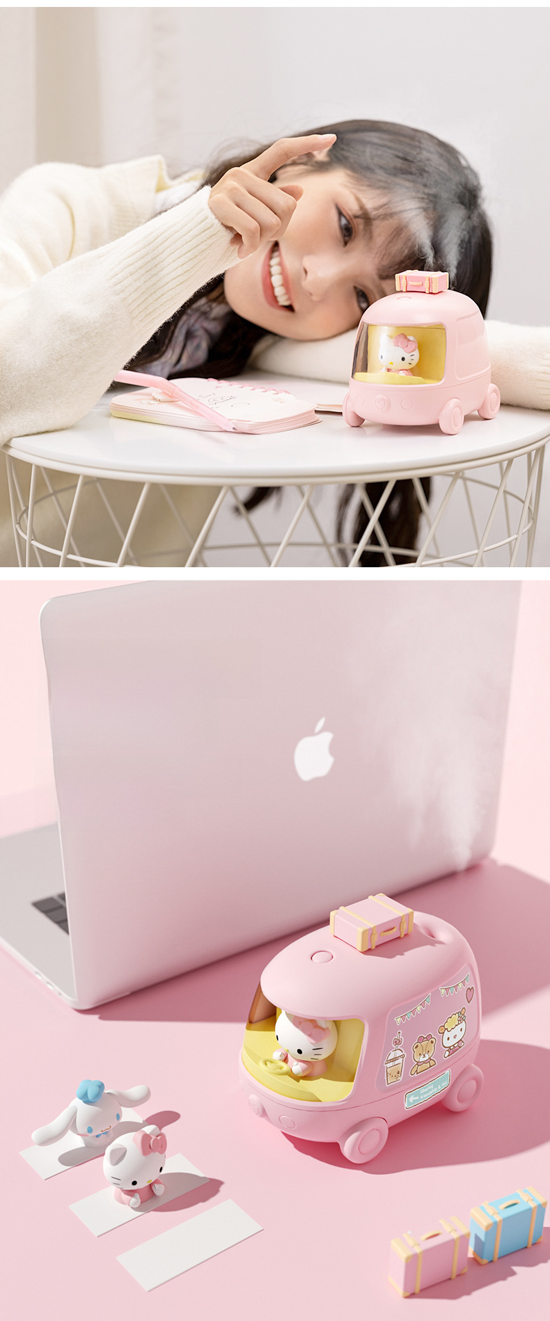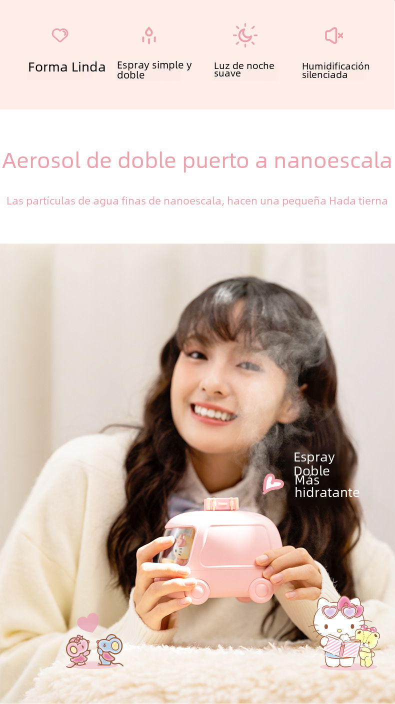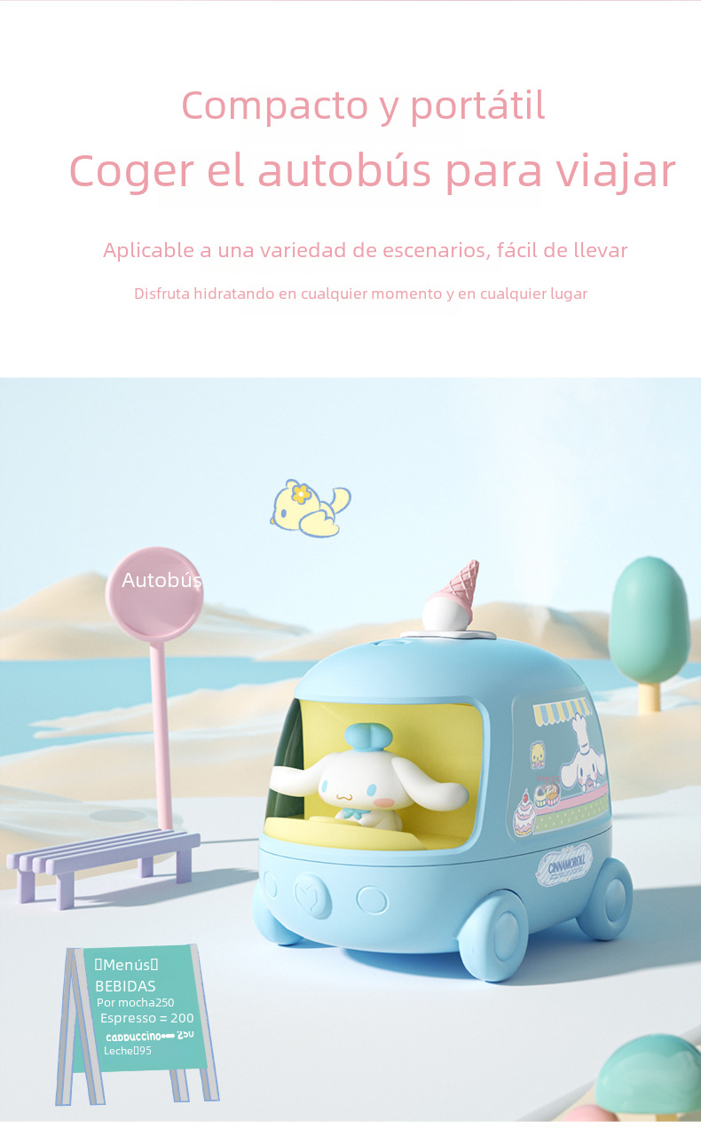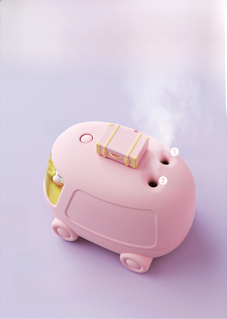 Yugui perro autobús doble aerosol humidificador inalámbrico mini lindo Mute portátil luz de la noche Oficina escritorio dormitorio