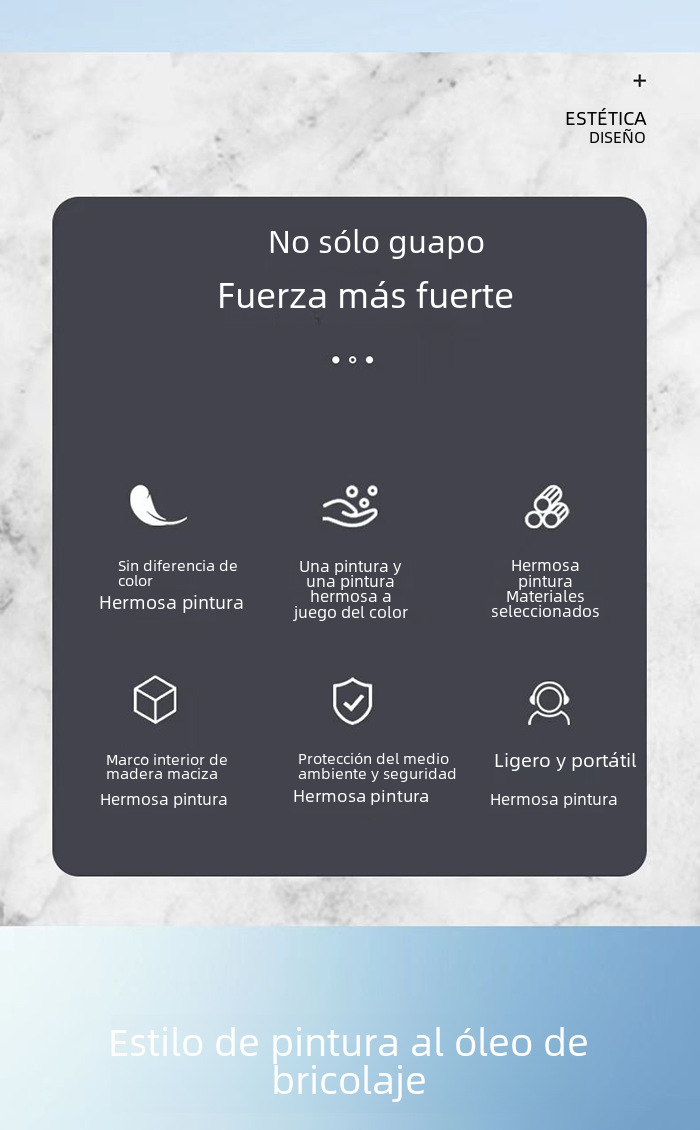 | Colores | A101 Flores en el mar,X233 salto crisantemo azul,B029 Rizhao Rose 3,X271 Sunset Sunset Girasoles,B011,X276 Swan Love,B036,B060,B061,B062,B063,B065,XT-112 curar a la niña,X275 mil crisantemos,A107 Ballenas en el aire,Escena de nieve romántica A108,A109 Tulipanes,A112 cielo azul girasol,A113 Gran dinastía Tang,A114 Casa de té japonesa,A115 Temporada de fuegos artificiales,A116 Lámpara Kongming,A119 Pared de rosas,Gato espiando,X260 peonía blanca,Reino del cielo X264,X262 Jianglin Wonderland,Familia de piano X268,X270 Cielo estrellado,H010 Tulipán,Madera (caballete triangular) |