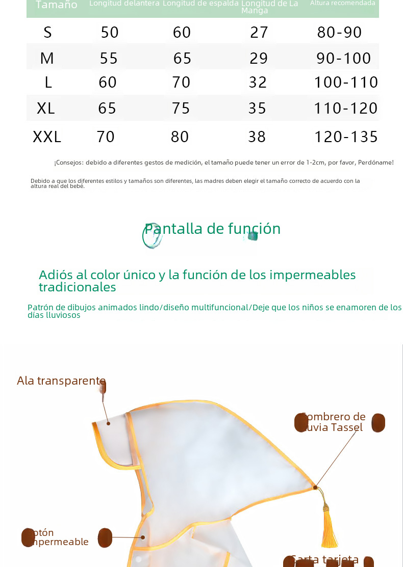 | Tamaño | S(80-90CM),M(90-100CM),L(100-110CM),XXL(120-135CM),XL(110-120CM) |