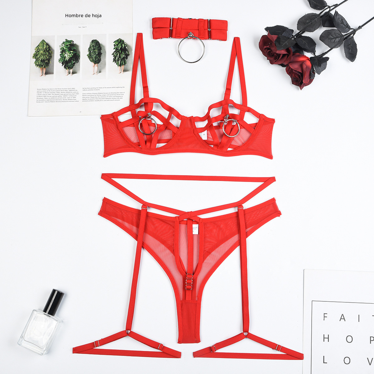 Diseño de cuatro piezas:El conjunto incluye cuatro piezas, proporcionando una variedad de opciones para satisfacer sus necesidades de lencería sexual.