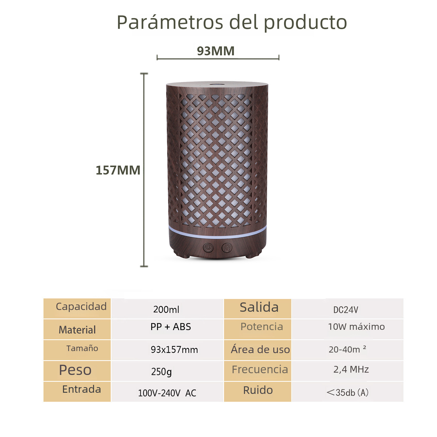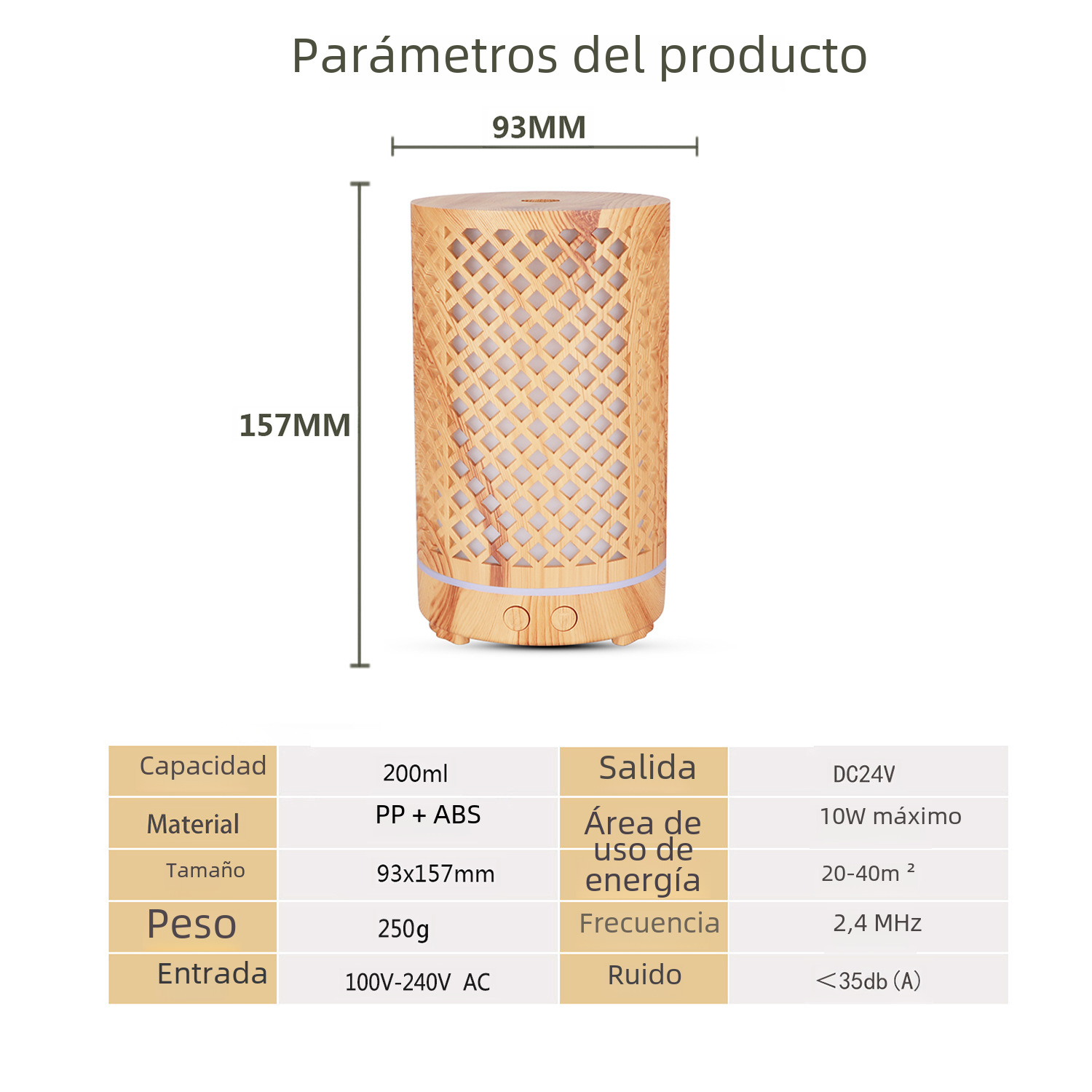 | Función | Humedificación,Aromaterapia,Ayuda para dormir,Atomizador,Ultrasonido,Silencio,Iluminación,Expansión de incienso,Otros |