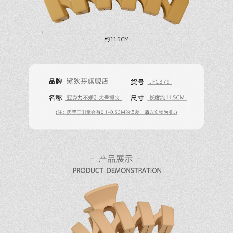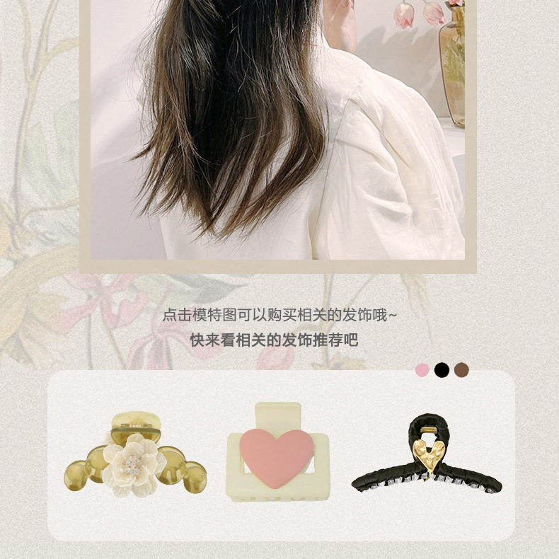 | Color | Pinza irregular Blanco 1 11,5 cm,Pinza irregular caqui 1 11,5 cm,Agarre irregular color café oscuro 1 11,5 cm,Pinza irregular negra 1 11,5 cm,El amor té con leche es de unos 6,5 cm de largo,Estilo de amor marrón 1 pieza es de aproximadamente 6,5 cm de largo,Café con leche Camelia 6cm,Camelia Marrón 6cm,Semicírculo marrón 1 pieza es de aproximadamente 9cm de largo,Semicírculo beige uno es de unos 9cm de largo |