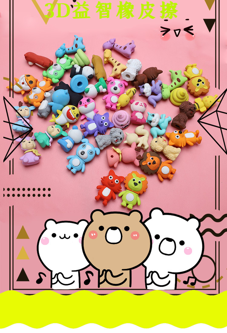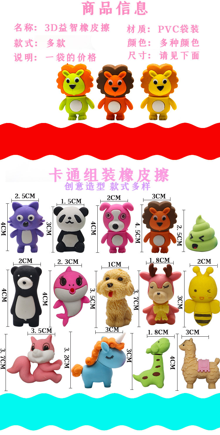 | Especificaciones | Entrega de una variedad de mezcla y combinación de dibujos animados,Perro de peluche,Coche de tablero de dibujo,Teléfono pequeño,Unicornio,Helado,Lollipop,Cilindro,Donuts,Lápiz labial,Una pieza de goma cortable de dinosaurio,La fruta se puede cortar en una pieza de goma,Pelota cortable una pieza de goma,Donut Unicornio,Carreras,Conejo espacial,Motocicleta,Castillo,Astros,Pequeño elefante,Oso del amor,Sirena,Bolso de mano,Conejo,Muñeca de fruta,Dinosaurios,Bambú Panda,Mono plátano,Robot,Helado,Paletas de hielo,Tortuga,Conejo de orejas largas,Comida rápida,Sombrero,Mono musical,Thomas,Cerdito 1,1 piruleta grande,Comida rápida 1,1 pony |