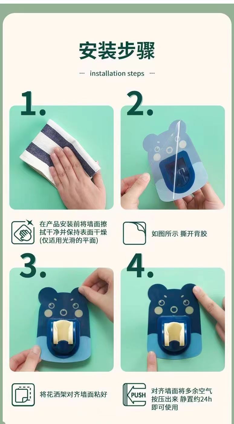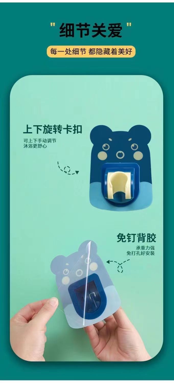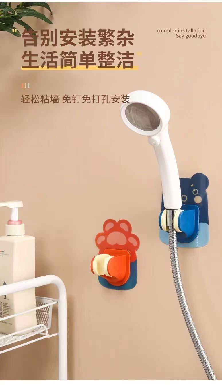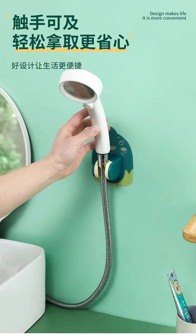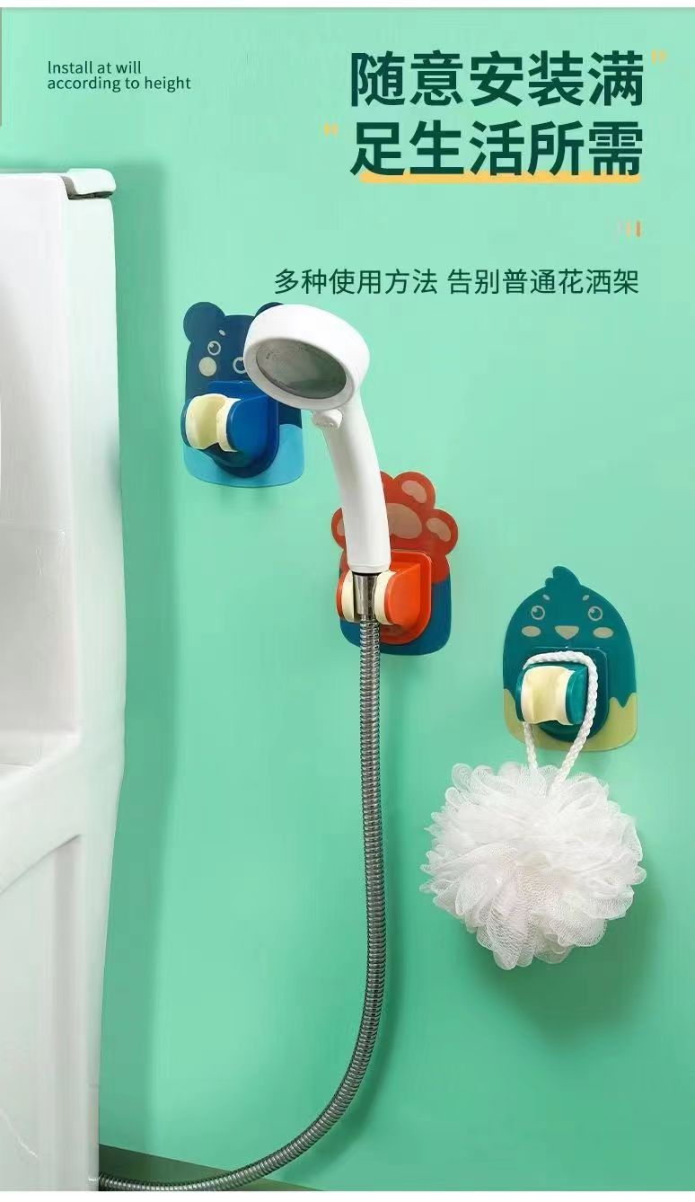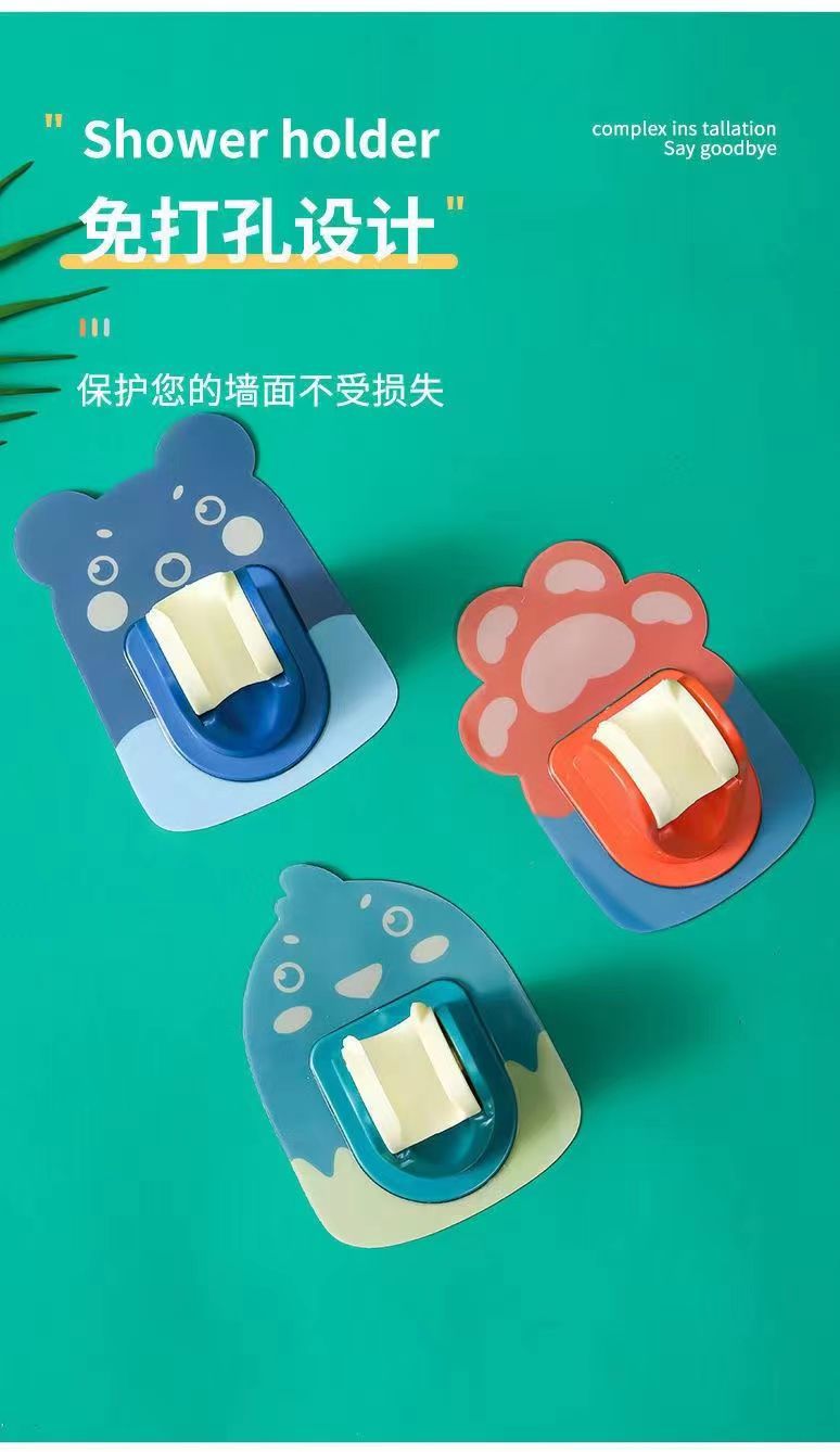 Pegatina de dibujos animados soporte de ducha baño pasta ducha clip Punch-libre boquilla asiento ducha sin fisuras ducha rack fabricante