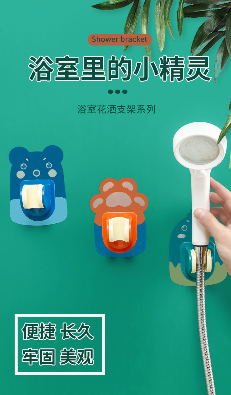 Pegatina de dibujos animados soporte de ducha baño pasta ducha clip Punch-libre boquilla asiento ducha sin fisuras ducha rack fabricante