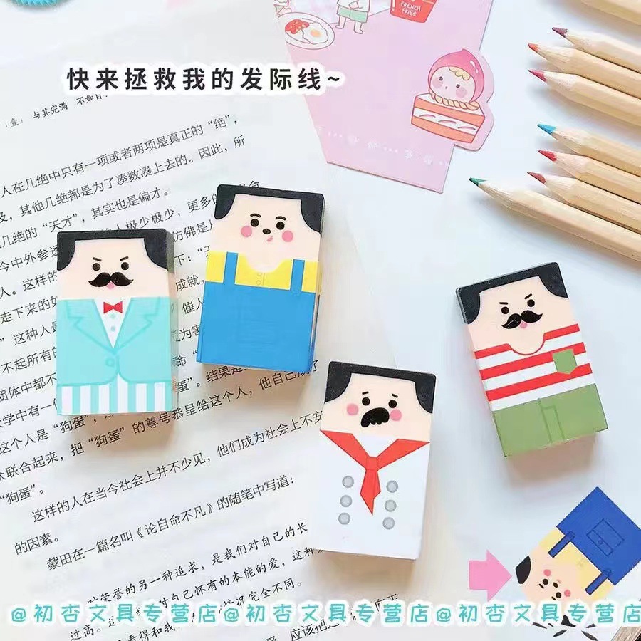 Borrador Calvo inteligente lindo ins divertido viejo divertido estudiantes de primaria usan borrador creativo de alto aspecto