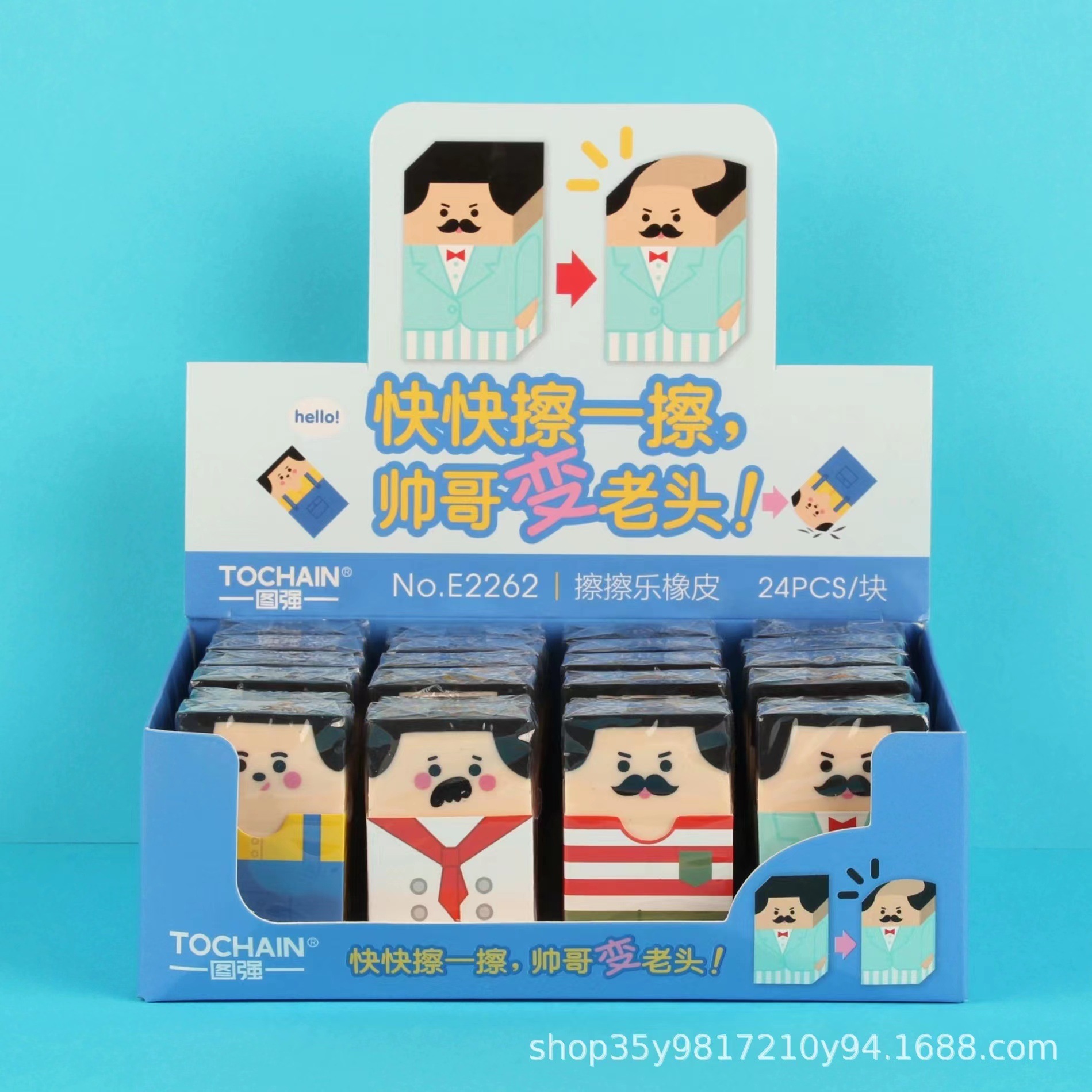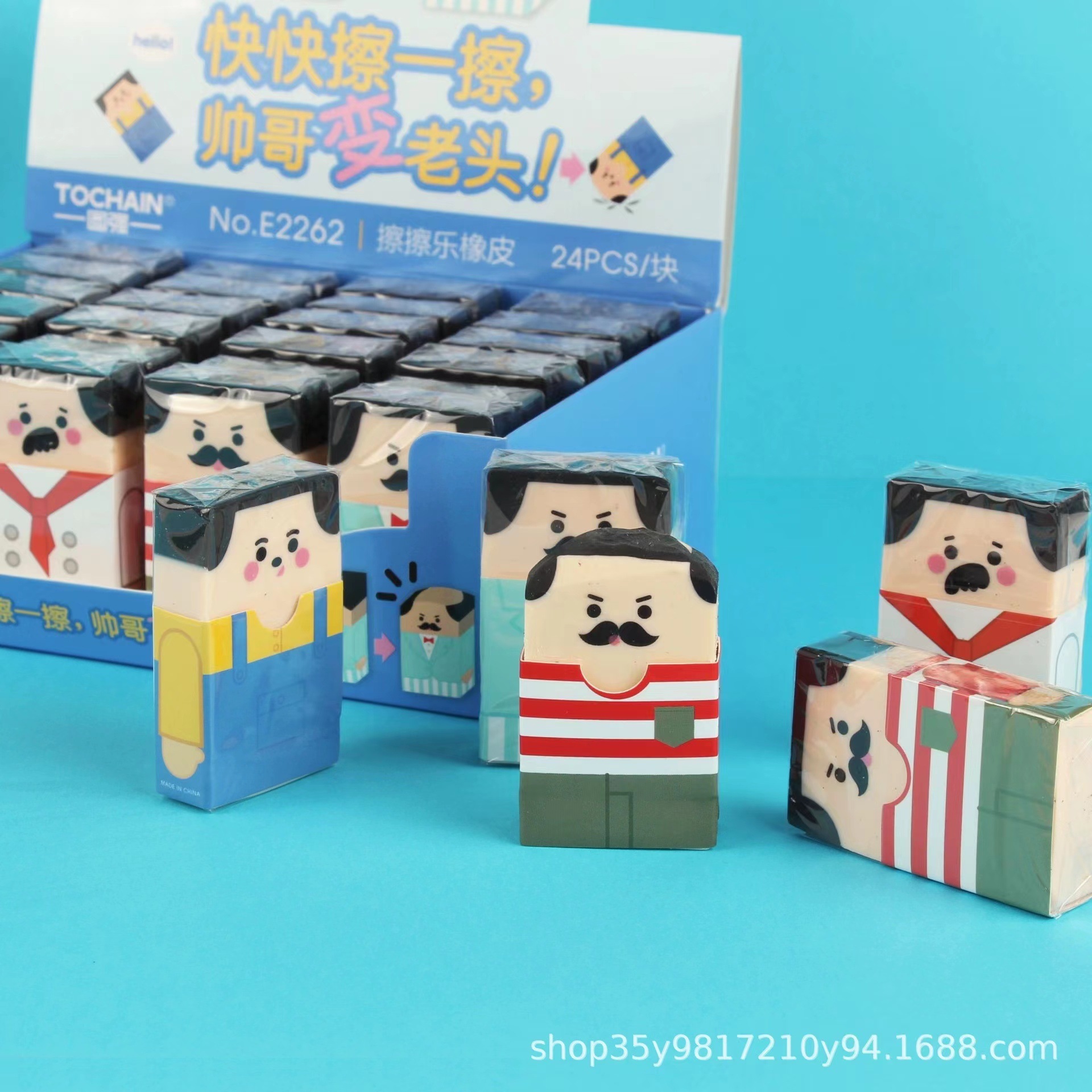 Tuqiang E2262 borrador Calvo dibujos animados lindo divertido borrador estudiante creativo divertido papelería suministros