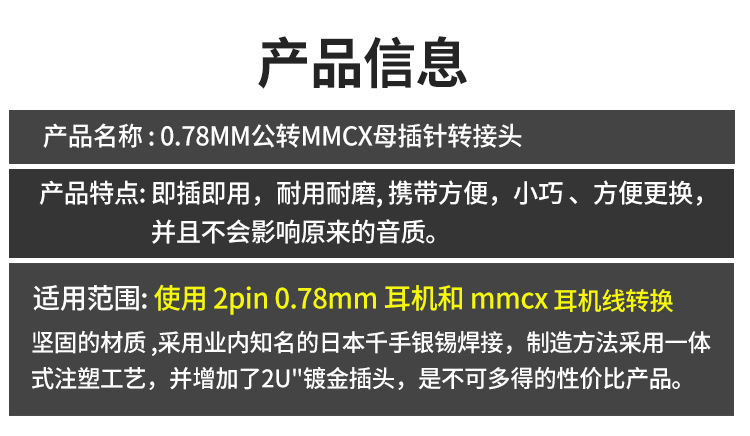 | Colores | 0.78 macho recto a MMCX hembra negro,0.78 macho directo a MMCX hembra transparente,0.78 revolución MMCX hembra codo negro,0.78 giro MMCX hembra codo transparente,Ultra corto 0,78 0,75 revolución MMCX hembra negro,Ultra corto 0,78 0,75 revolución MMCX hembra transparente,0.78 Adaptador de metal hembra MMCX de revolución,0.75 revolución 0.78 hembra |