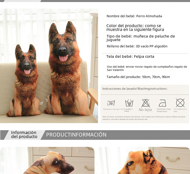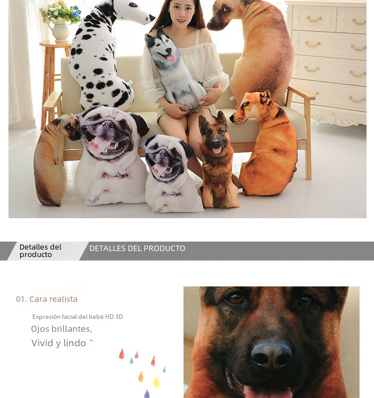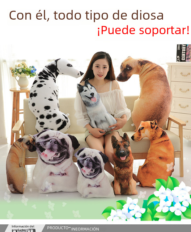Creativo 3D simulación perro almohada felpa juguete perro muñeca entrega de una sola pieza