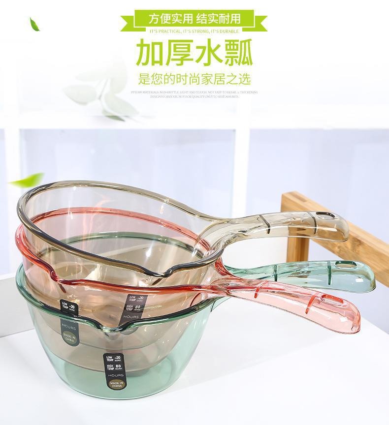 Cuchara de agua resistente a las caídas mango largo transparente profundización flotador de agua grande cuchara de agua doméstica con boca cuchara de agua de cocina