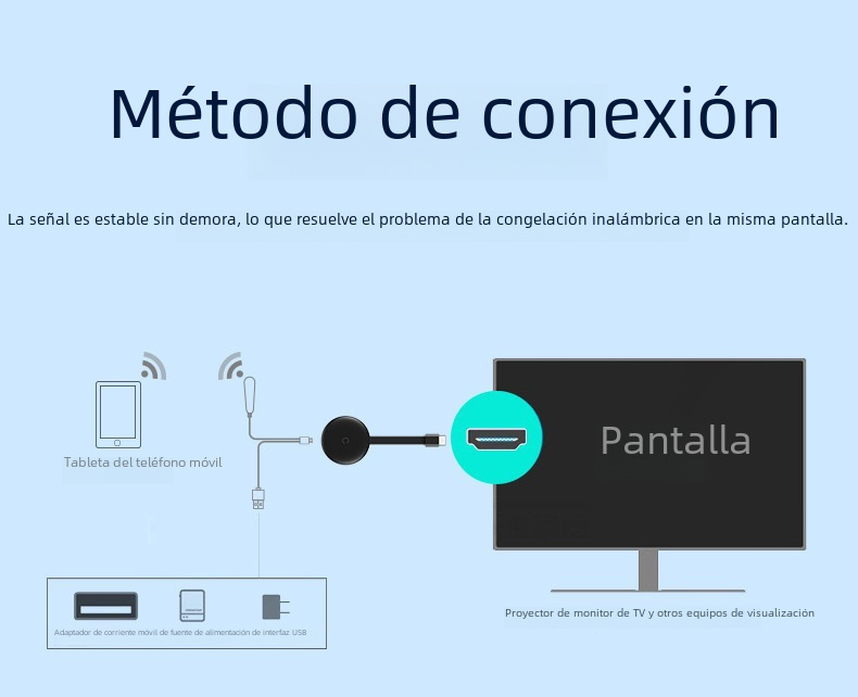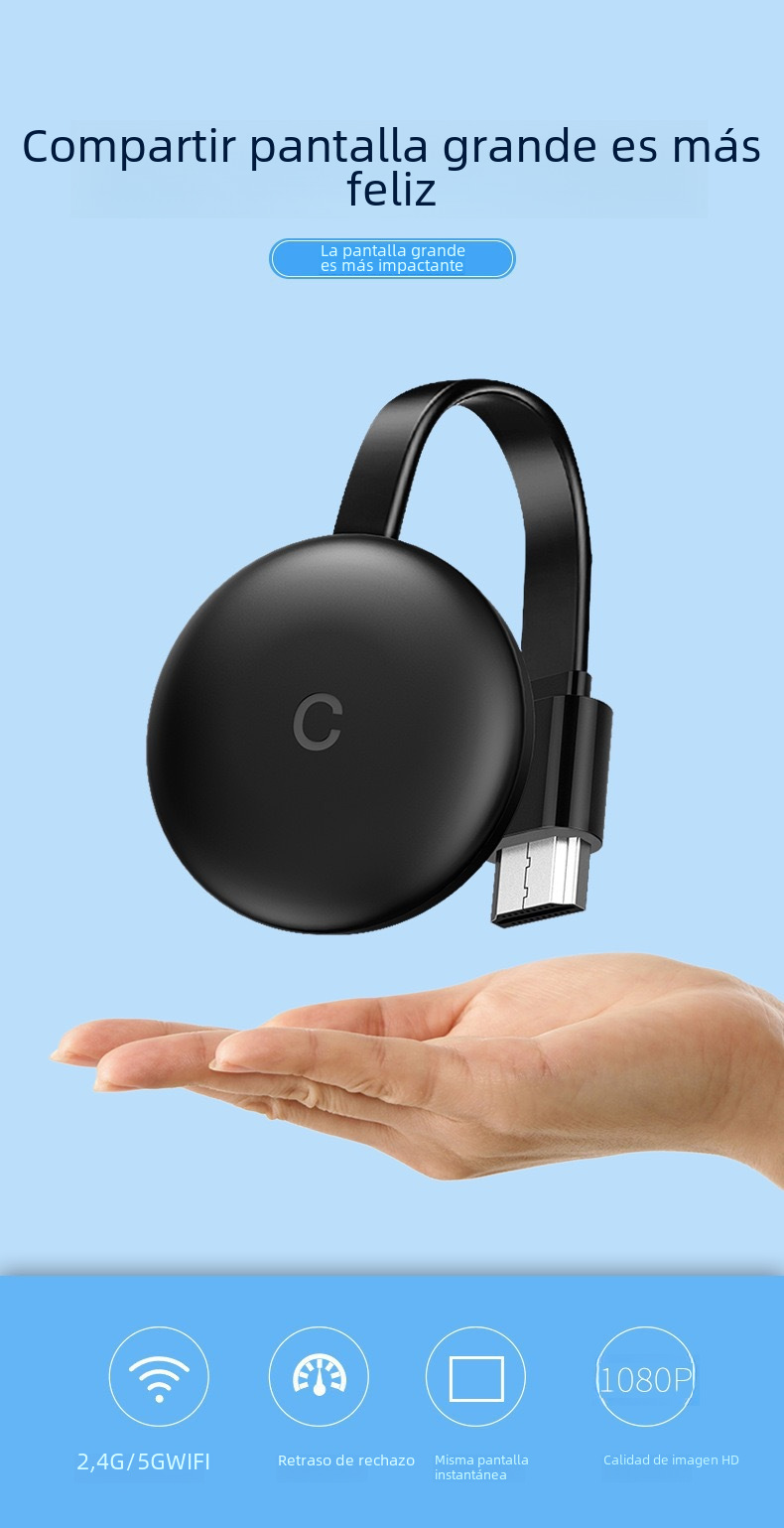 Conectividad inalámbrica HDMI:Este dispositivo ofrece una conexión inalámbrica HDMI de alta definición, permitiendo una transmisión de imagen clara y sin interrupciones desde su teléfono hasta su televisor.