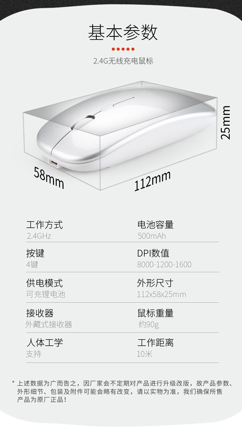 | Especificaciones | 2.4G-Blanco (versión de batería),2.4G-Negro (versión de batería),Modo dual-blanco (versión de carga),Modo dual-gris (versión de carga),Modo dual-negro (versión recargable),Modo dual-dorado (versión recargable),Modo dual-blanco (versión luminosa recargable),Modo dual-gris (versión luminosa recargable),Modo dual-negro (versión luminosa recargable),Modo dual dorado (versión luminosa recargable),Modelo ordinario |