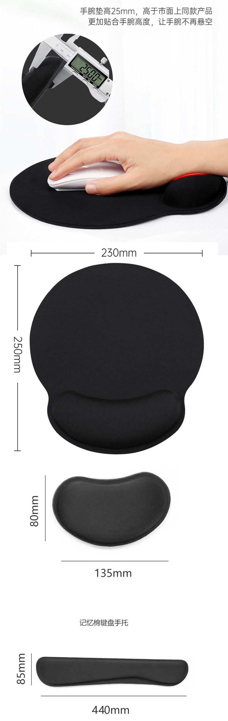 Traje de teclado de almohadilla de muñeca ordinaria Negro,Conjunto ordinario de tres piezas de algodón,Ordinaria bandeja de mano pequeña teclado pad traje