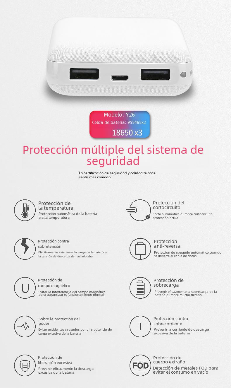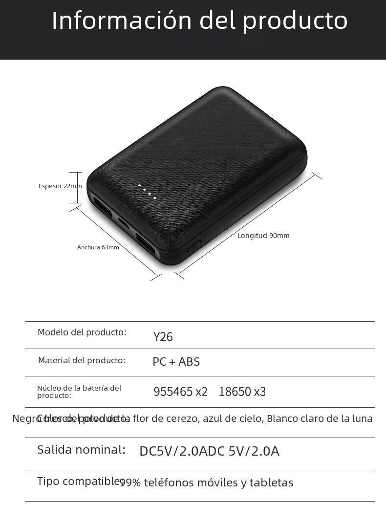 | Capacidad de potencia | 5000mAh,10000mAh,10000mAh (célula del polímero) |