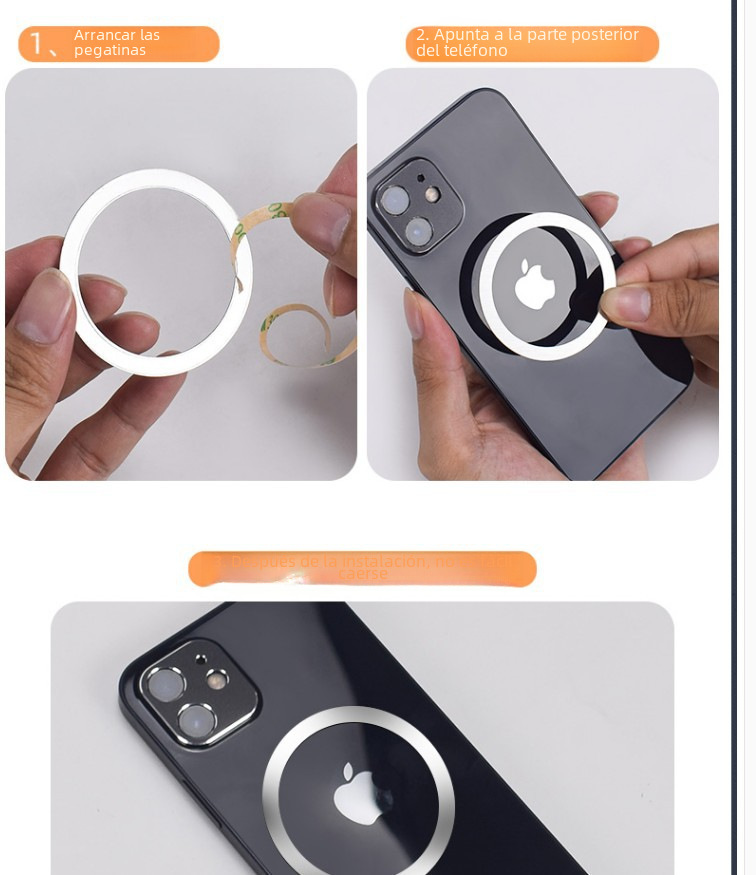 | Colores | Anillo plateado (anillo interior 45mm anillo exterior 55mm,Anillo negro (anillo interior 45mm anillo exterior 55mm,Plata) Anillo magnético en forma de Q,(Negro) Anillo magnético en forma de Q,Tabletas de hierro de 3CM (para tamaños inferiores a 4.7),Tabletas de hierro de 4CM (para tamaños 4.7-6.3),(Blanco de la leche) anillo (anillo interior 45mm anillo exterior 55mm,(Blanco leche) Anillo magnético en forma de Q,Impresión redonda negro,Impresión tipo C negro,Impresión redonda blanca |