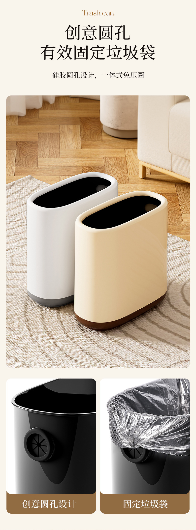 | Color | Los botes de basura de las grietas son amarillos y los botes de basura de las grietas son blancos. |