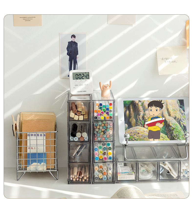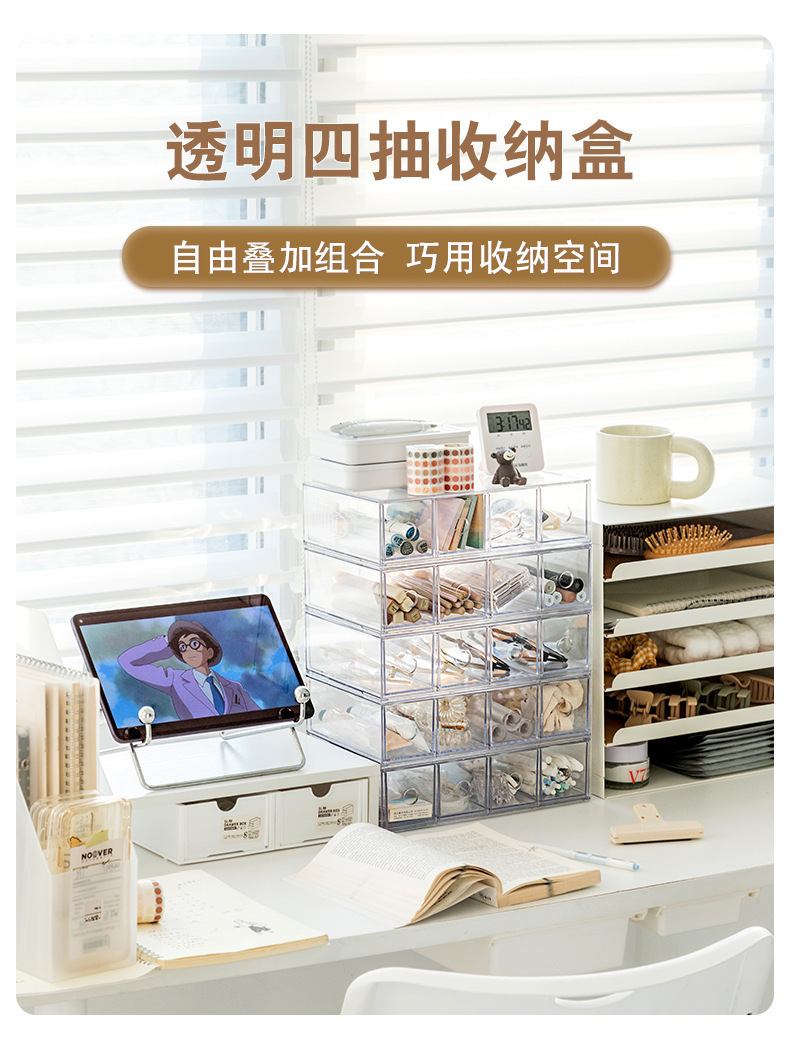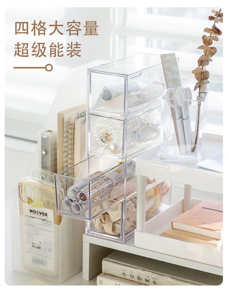 | Modelo | Caja de almacenamiento de escritorio de cajón de cuatro celdas transparente |