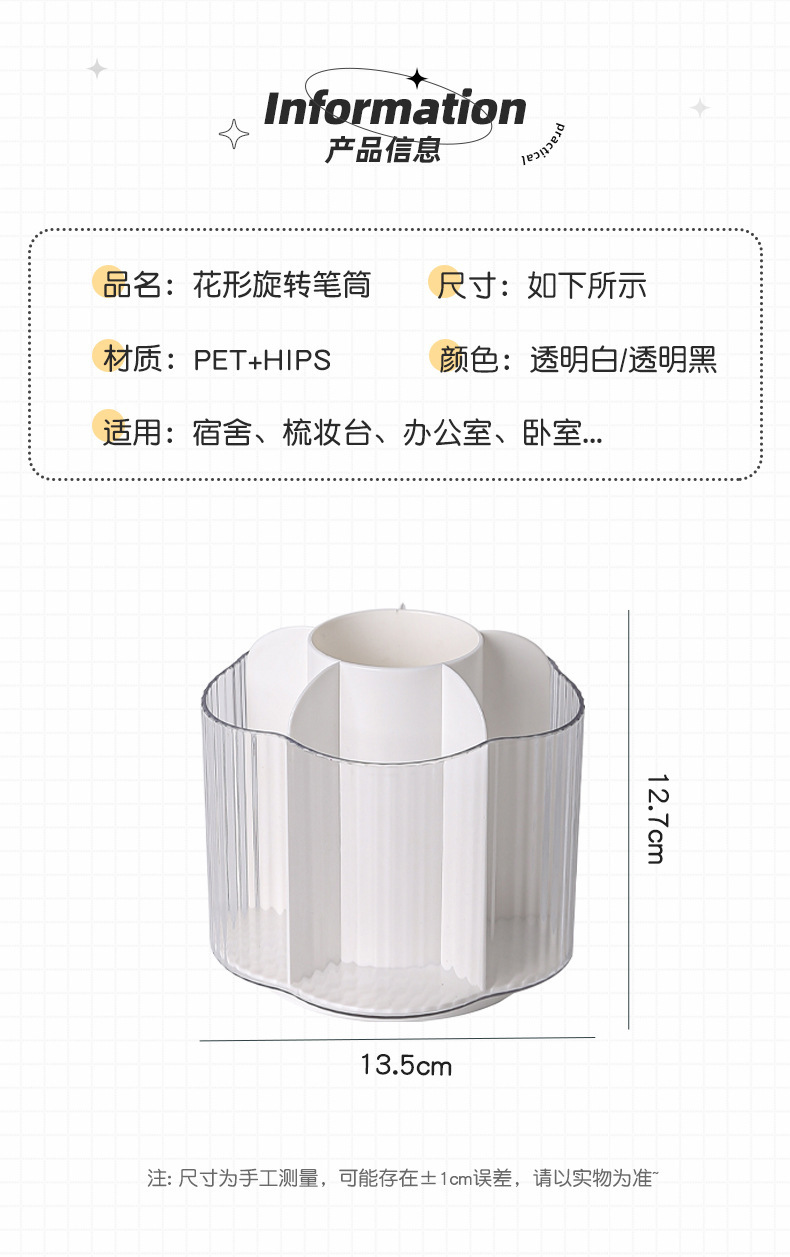 | Color | El tubo giratorio en forma de flor es blanco y Negro. |