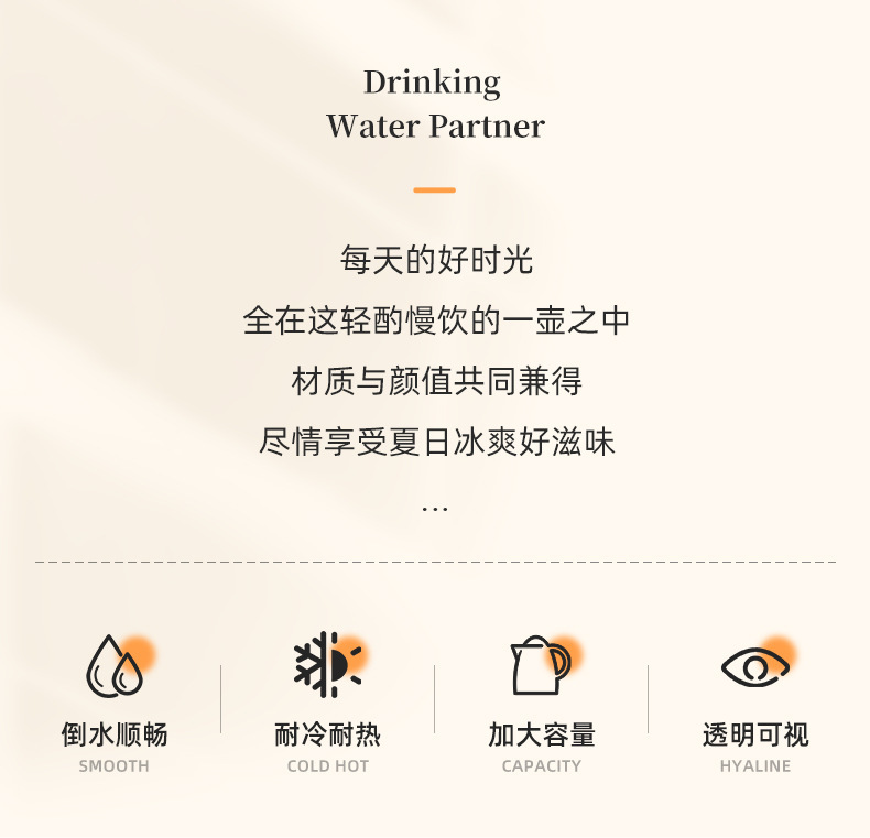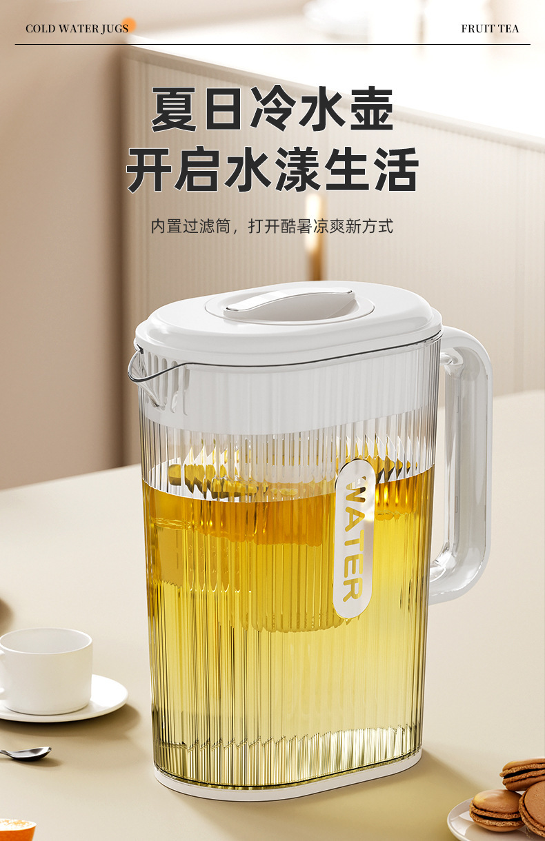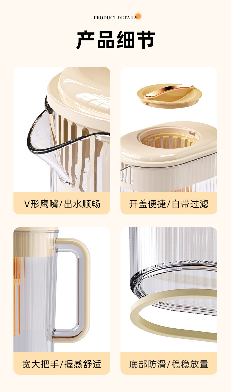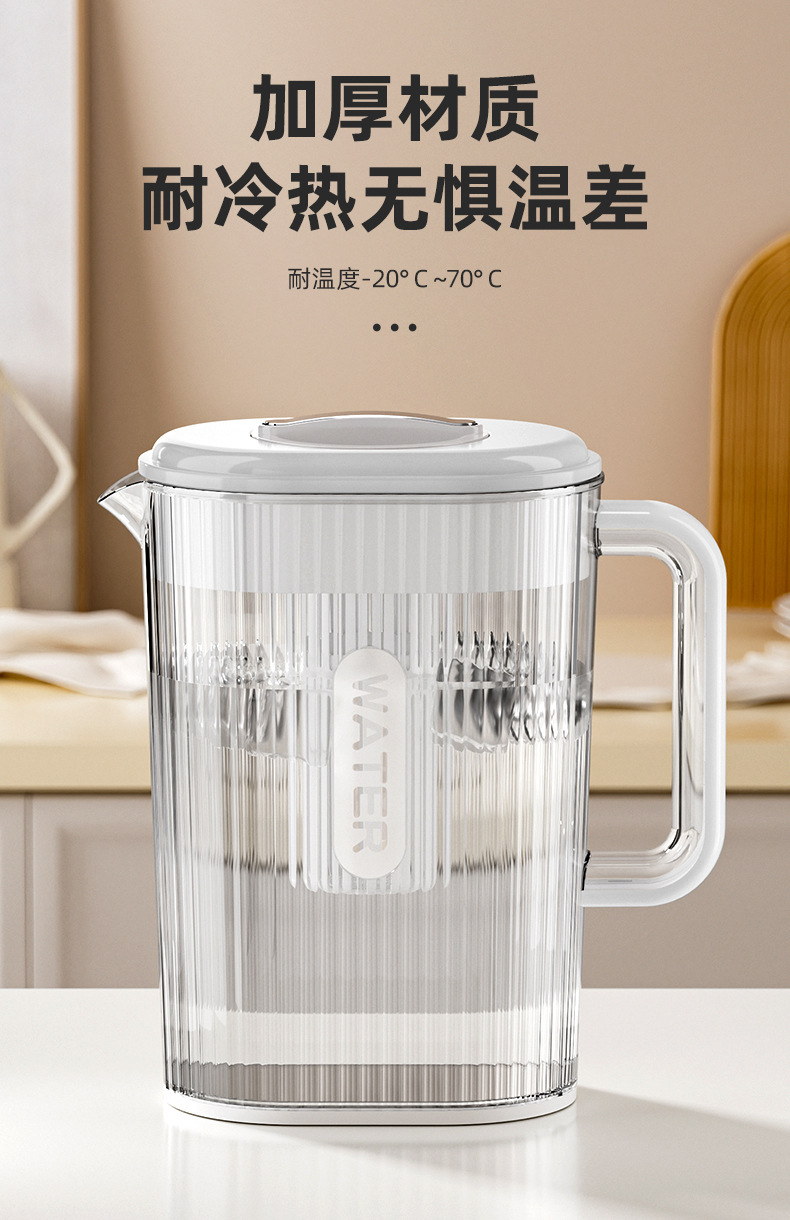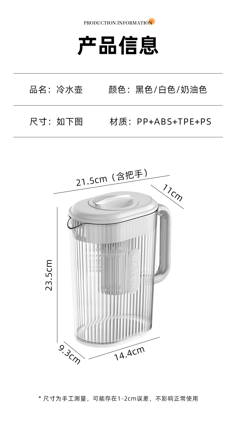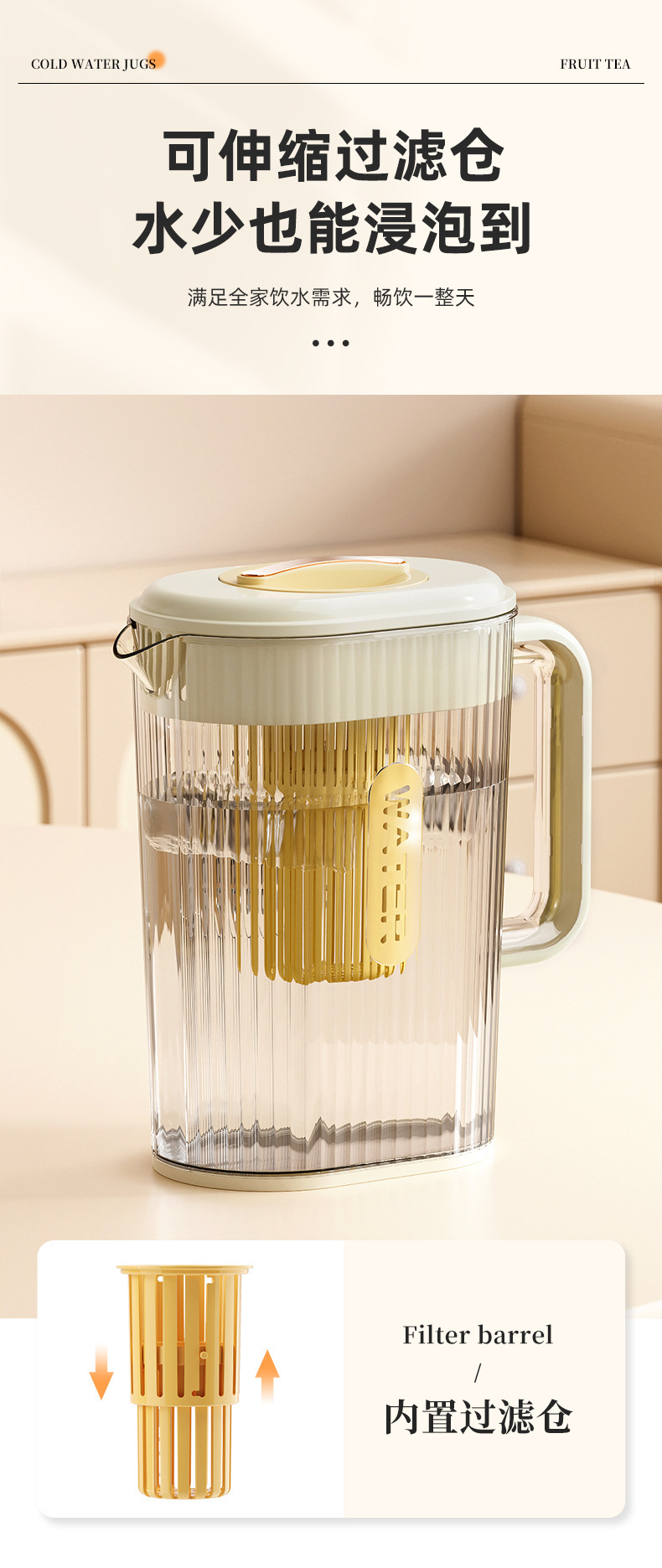 材质:伸缩沥水筛、小盖子电镀件 PP;盖子、小盖子、把手配件ABS;底部防滑垫TPE;壶身 PS